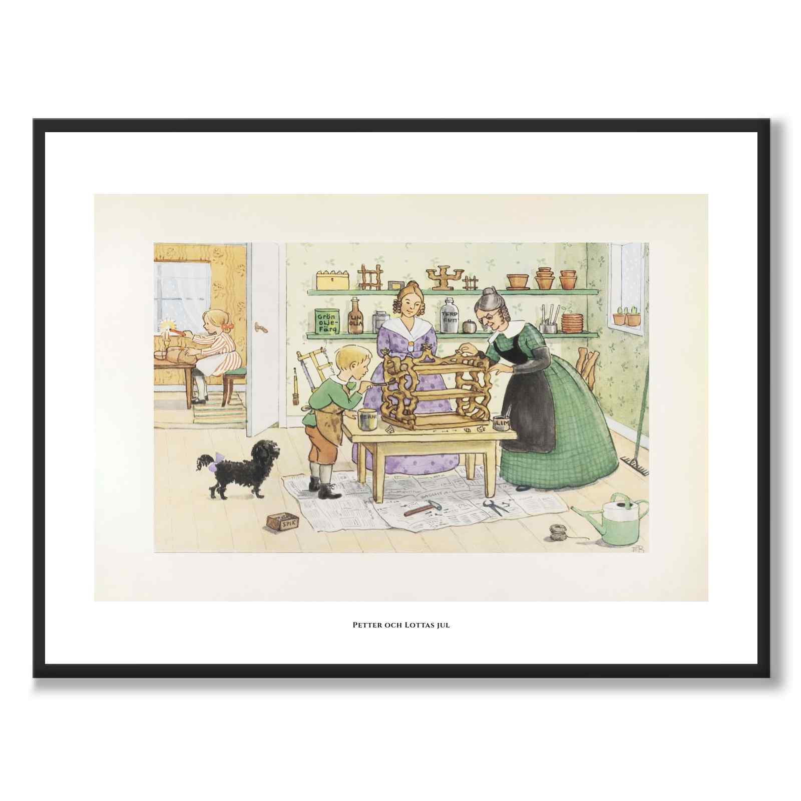 Poster with the illustration Petter and Lotta's Christmas (1947) by the Swedish author and illustrator Elsa Beskow (1874–1953).