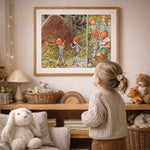 Plakat med illustrasjon fra en av Sveriges mest elskede barnebøker gjennom tidene: Tomtebobarnen av Elsa Beskow fra 1910.