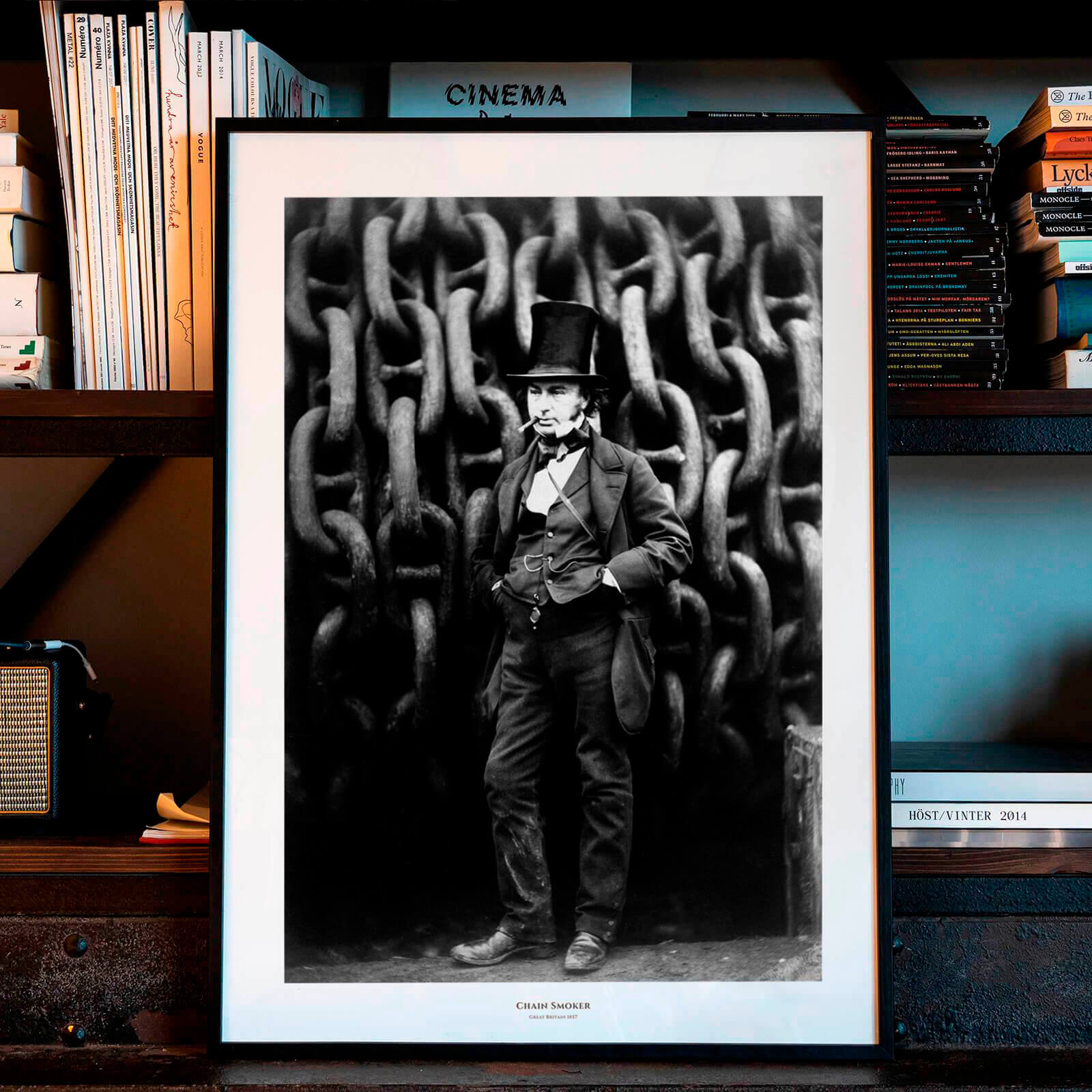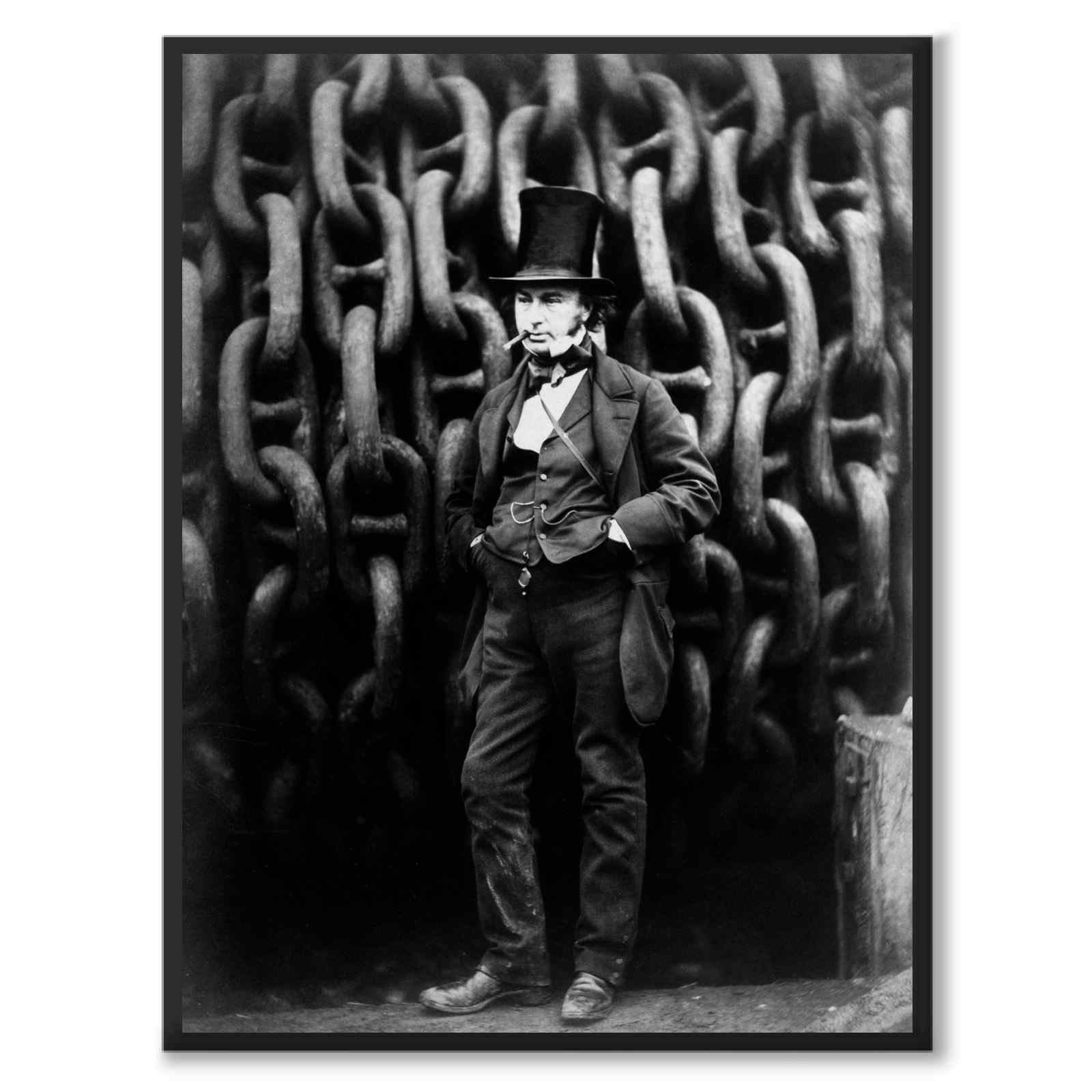 Ingenjören Isambard Kingdom Brunel står framför kättingarna till fartyget The Great Eastern som han har designat. Fotografiet är taget 1857 och är en avbildning av ingenjören som hjälte. Isambard låg bakom stora delar av den industriella revolutionen i England i mitten på 1800-talet och var känd för sina storslagna konstruktioner likväl som sin personlighet. The Great Eastern var kronan på hans verk, nationens stora stolthet och det överlägset största fartyget som någonsin hade byggts vid den här tidpunkten.
