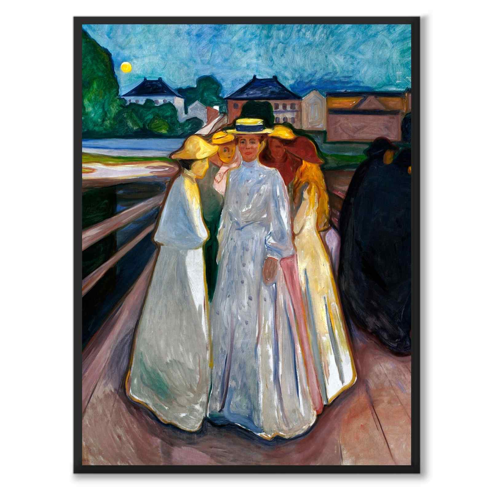 Poster med målningen On the Bridge av den ikoniska, norska konstnären Edvard Munch. Verket målades år 1903 och föreställer några kvinnor på en bro i Munchs sommarstad, den lilla staden Åsgårdstrand i Norge.