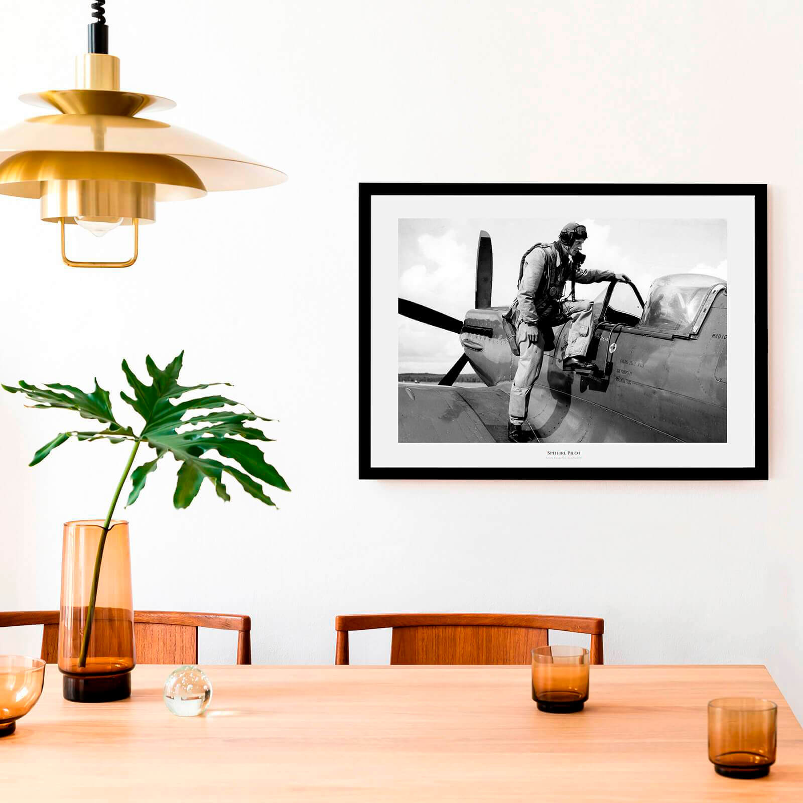 På bilden syns en svensk pilot som är på väg att stiga in i en Spitfire, ett jaktflygplan från andra världskriget.