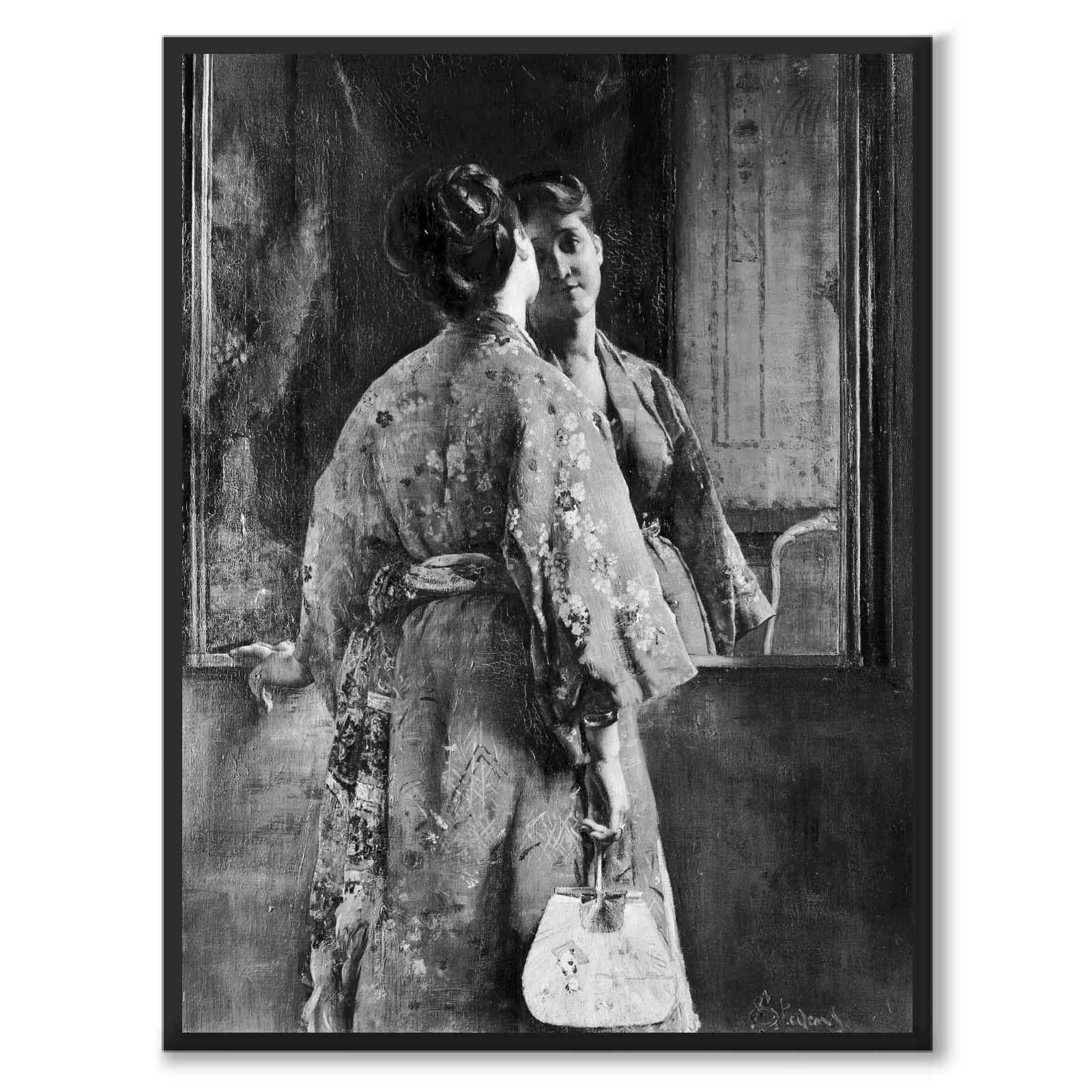 Poster med målningen The Japanese Robe. Verket målades 1872 av den belgiska konstnären Alfred Stevens. Han är känd för sina eleganta och realistiska porträtt av fashionabla societetskvinnor.