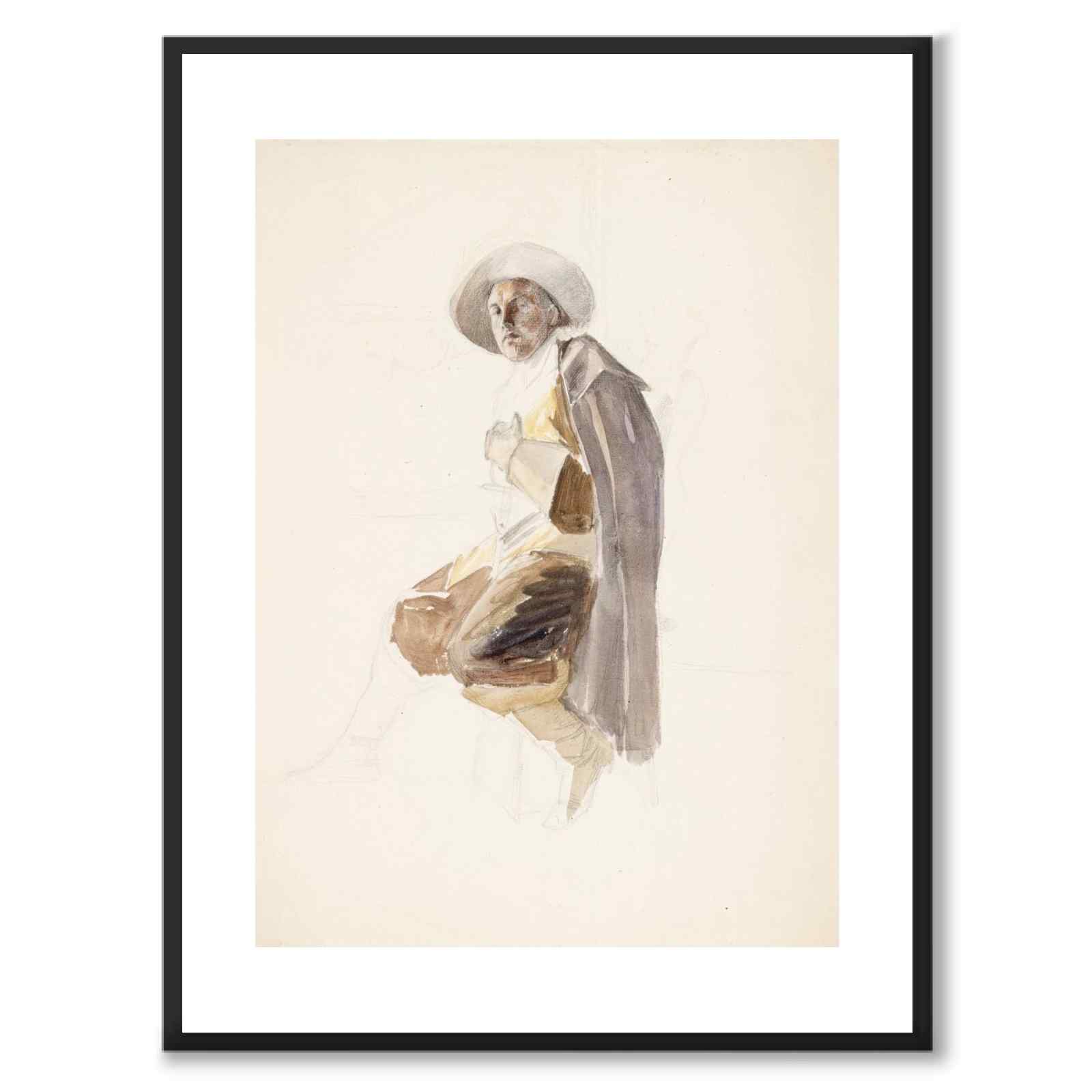 Poster med den vackra målningen A young man av Albert Edelfelt från sent 1800-tal. Bilden föreställer en man med kappa och hatt, som sitter med blicken mot betraktaren.