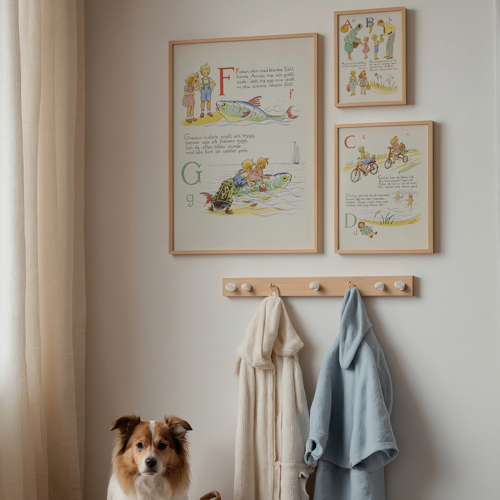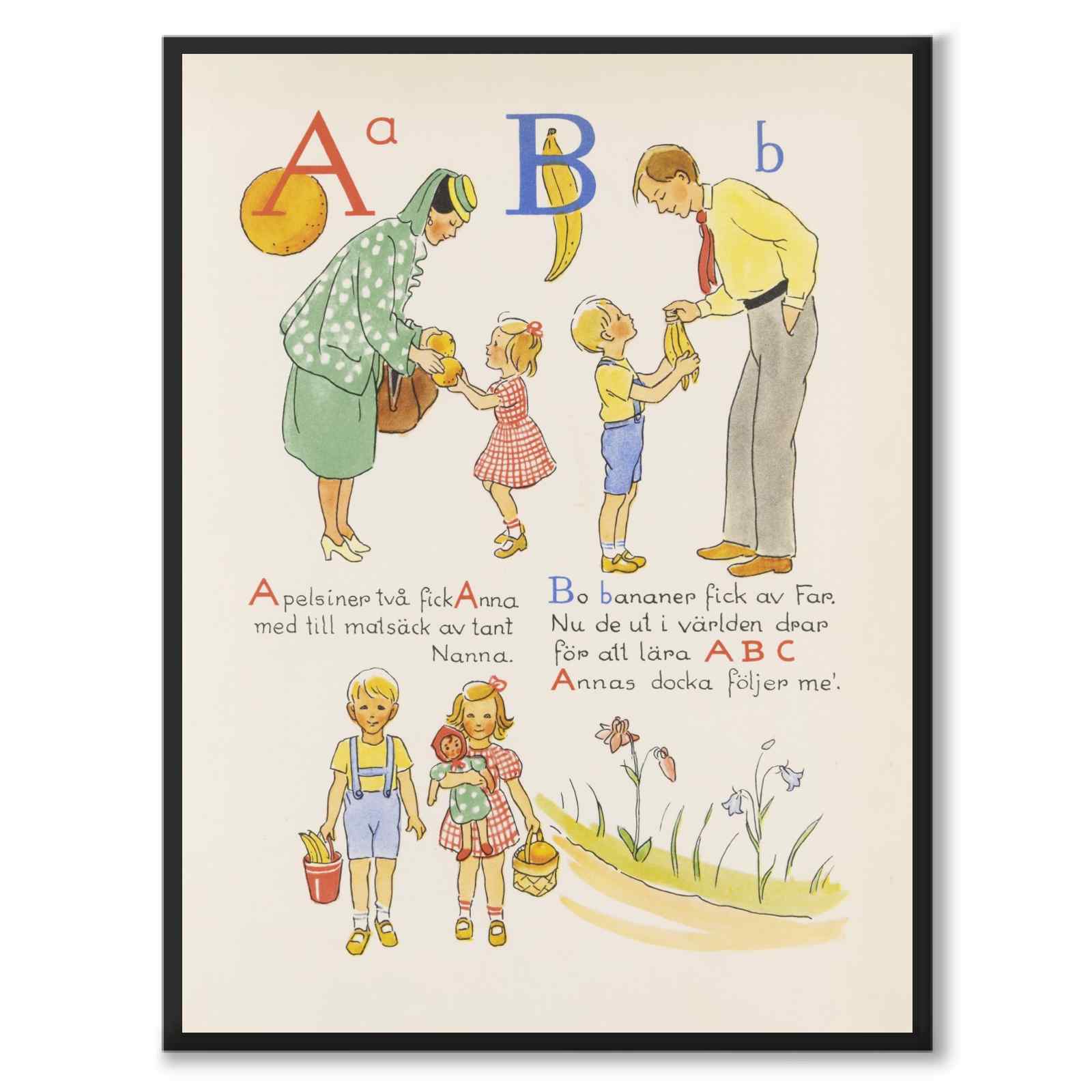 Poster med en nostalgisk illustration från boken ABC-resan, skriven av Elsa Beskow och utgiven år 1945.