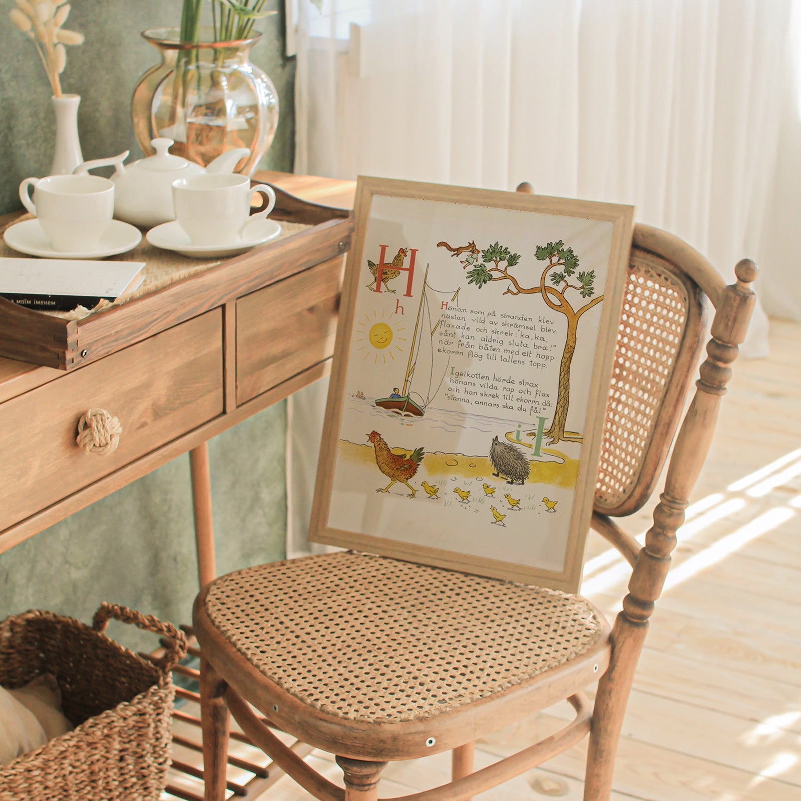 Poster med en nostalgisk illustration från boken ABC-resan, skriven av Elsa Beskow och utgiven år 1945.