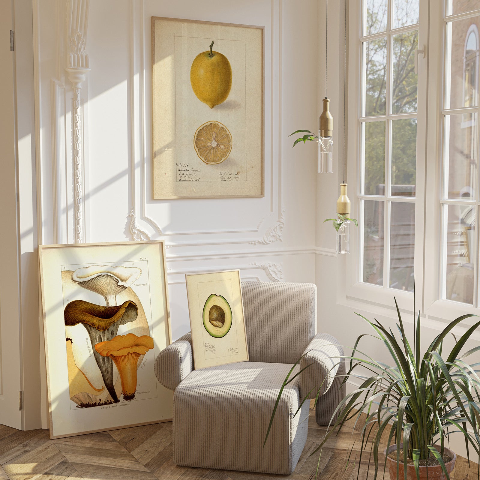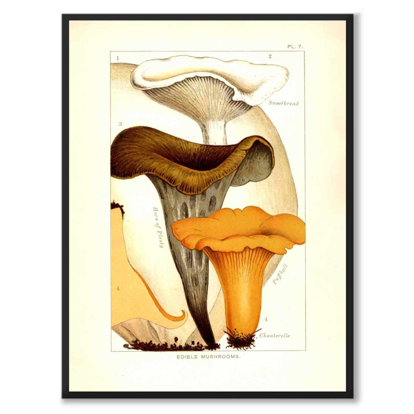 Poster med en vacker, klassisk illustration ur boken Sveriges ätliga och giftiga Svampar som publicerades i serier mellan år 1860-1866 av Elias Fries.