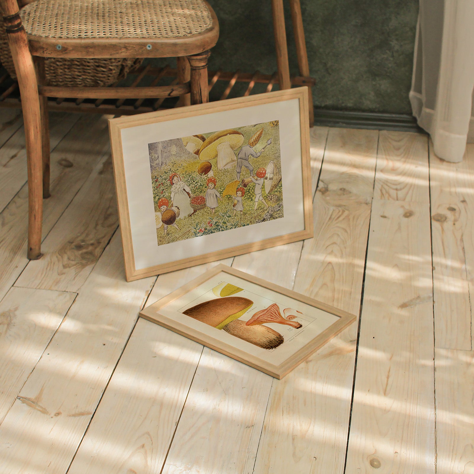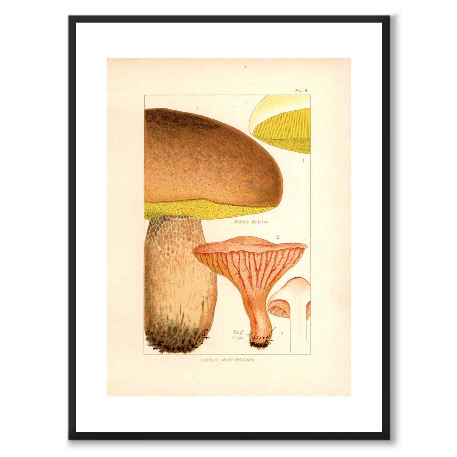 Poster med en vacker, klassisk illustration ur boken Sveriges ätliga och giftiga Svampar som publicerades i serier mellan år 1860-1866 av Elias Fries.