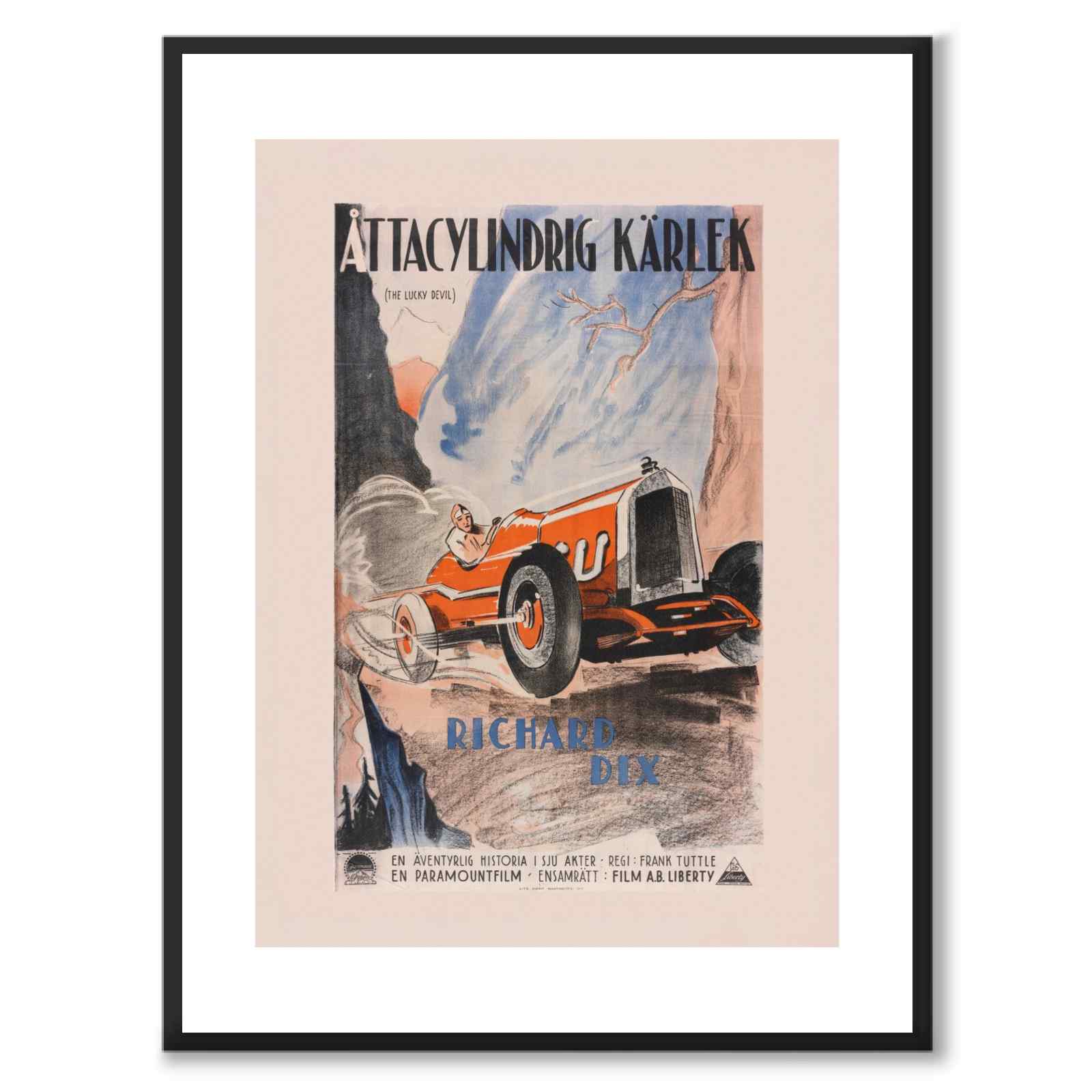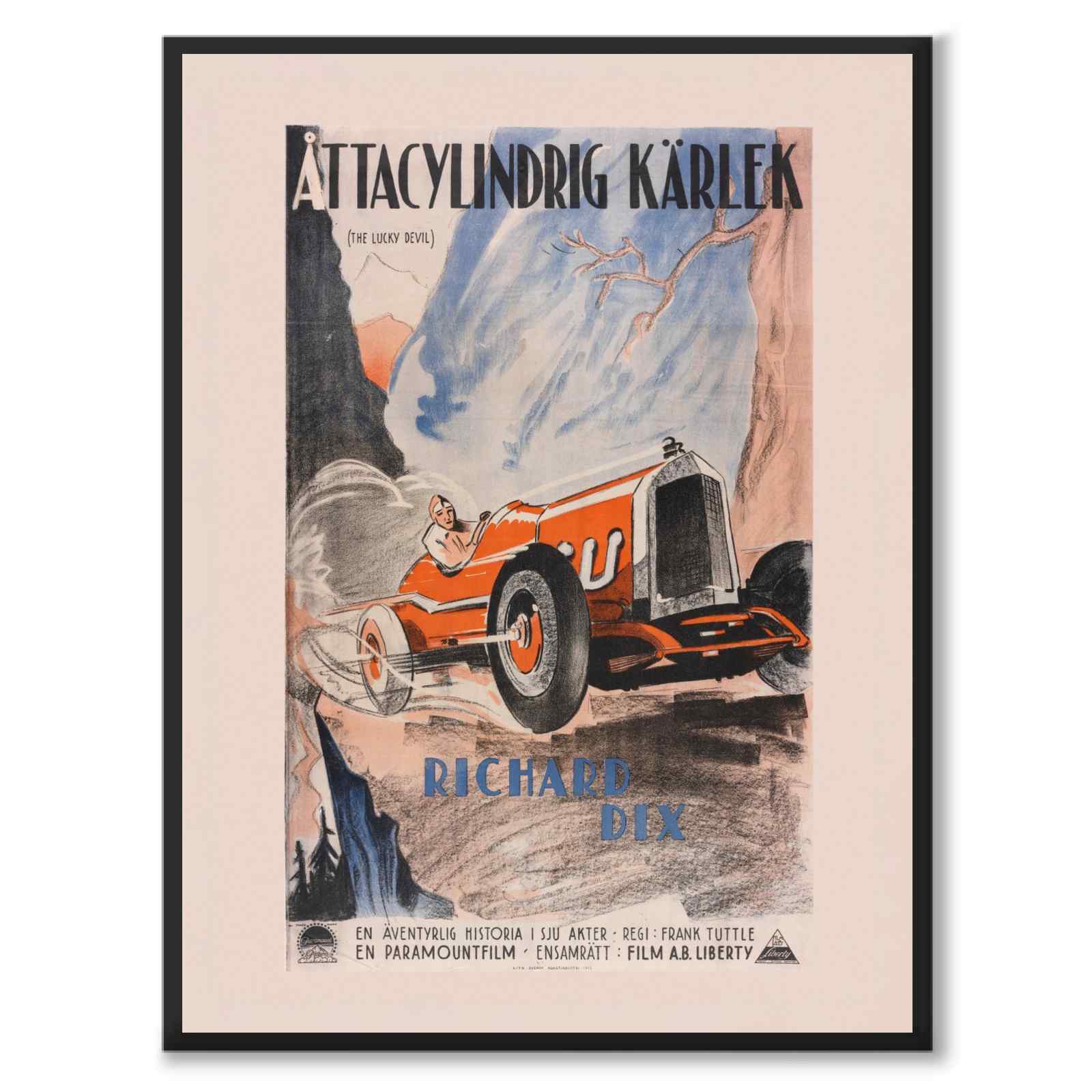 Poster med en retro filmaffisch från 1925. Affischen är från filmen Åttacylindrig kärlek som kom ut samma år. Som vi ser på postern är filmen "en äventyrlig historia i sju akter", regisserad av Frank Tuttle.