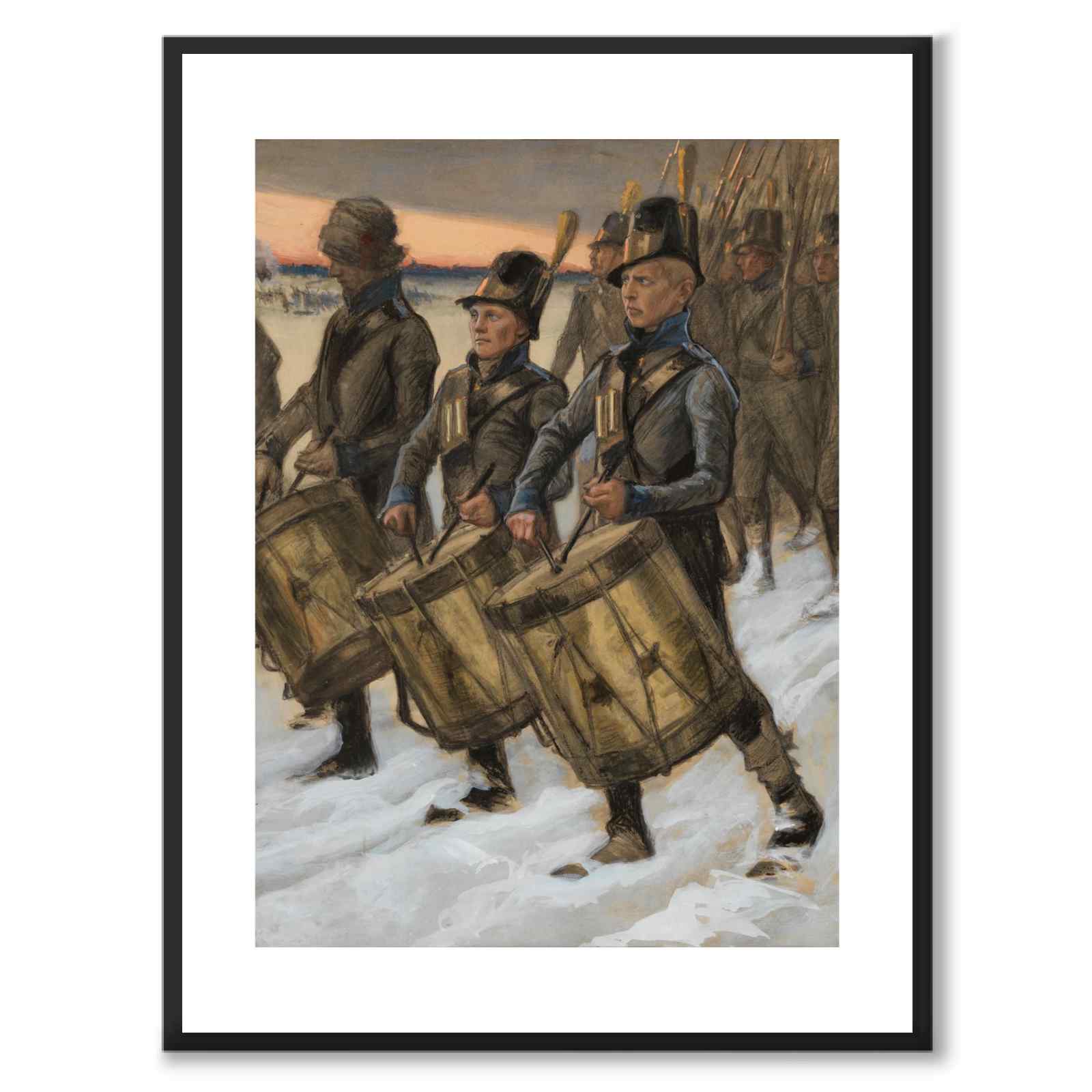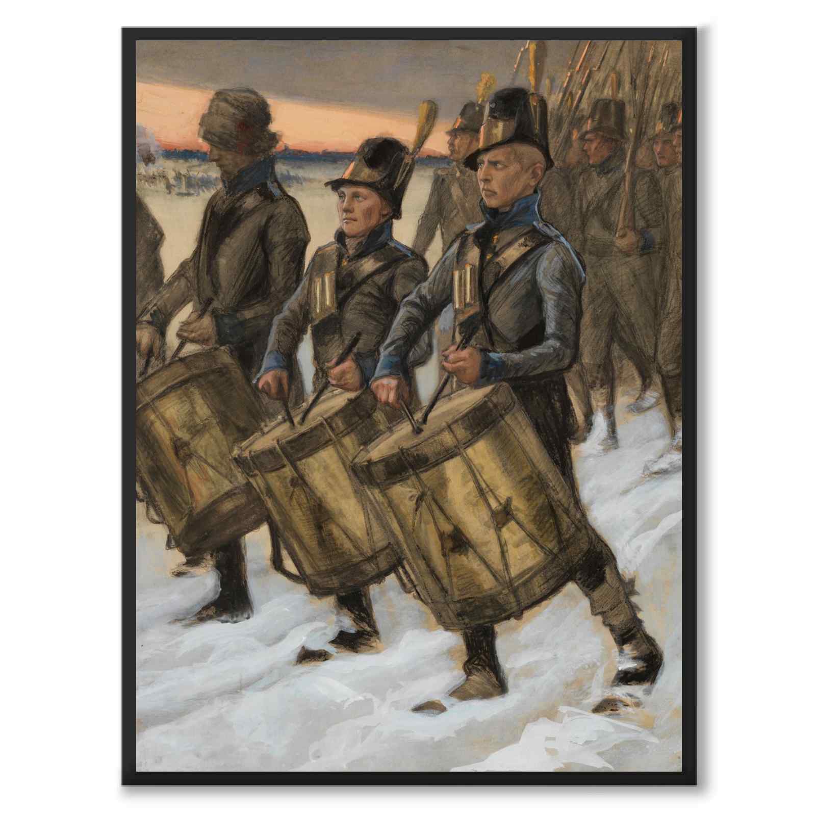 Poster med en vacker målning skapad mellan 1897-1900-talet, av Albert Edelfelt. Målningen föreställer utförandet av Björneborgarnas marsch.