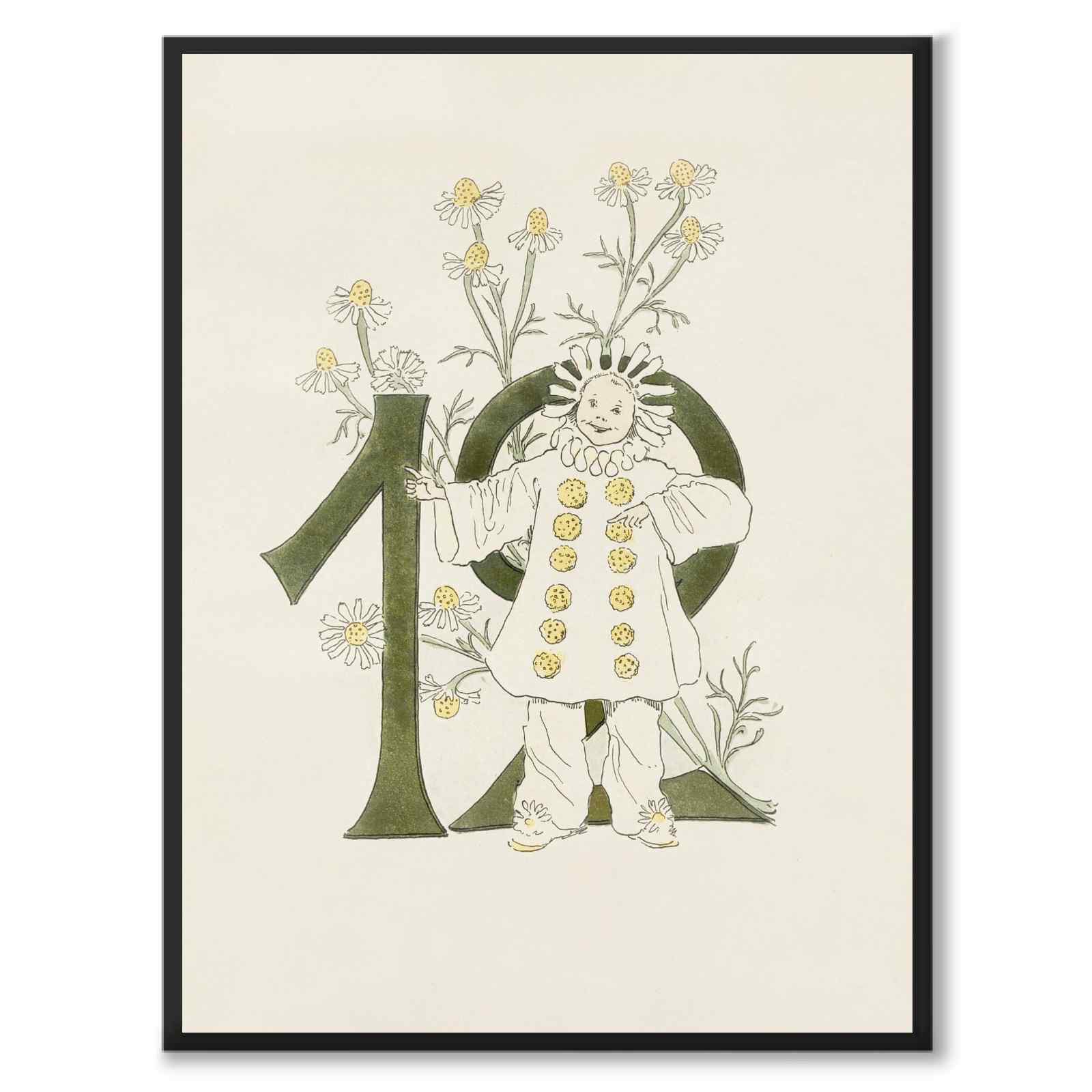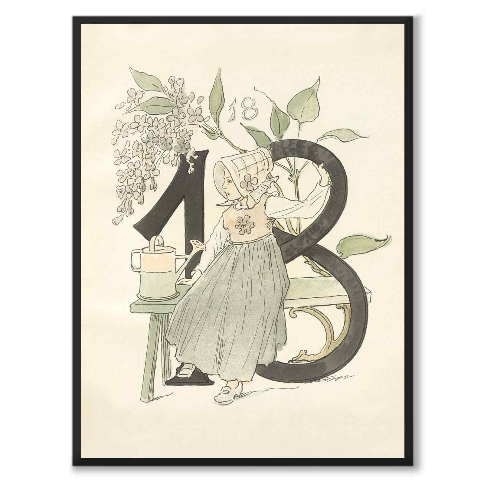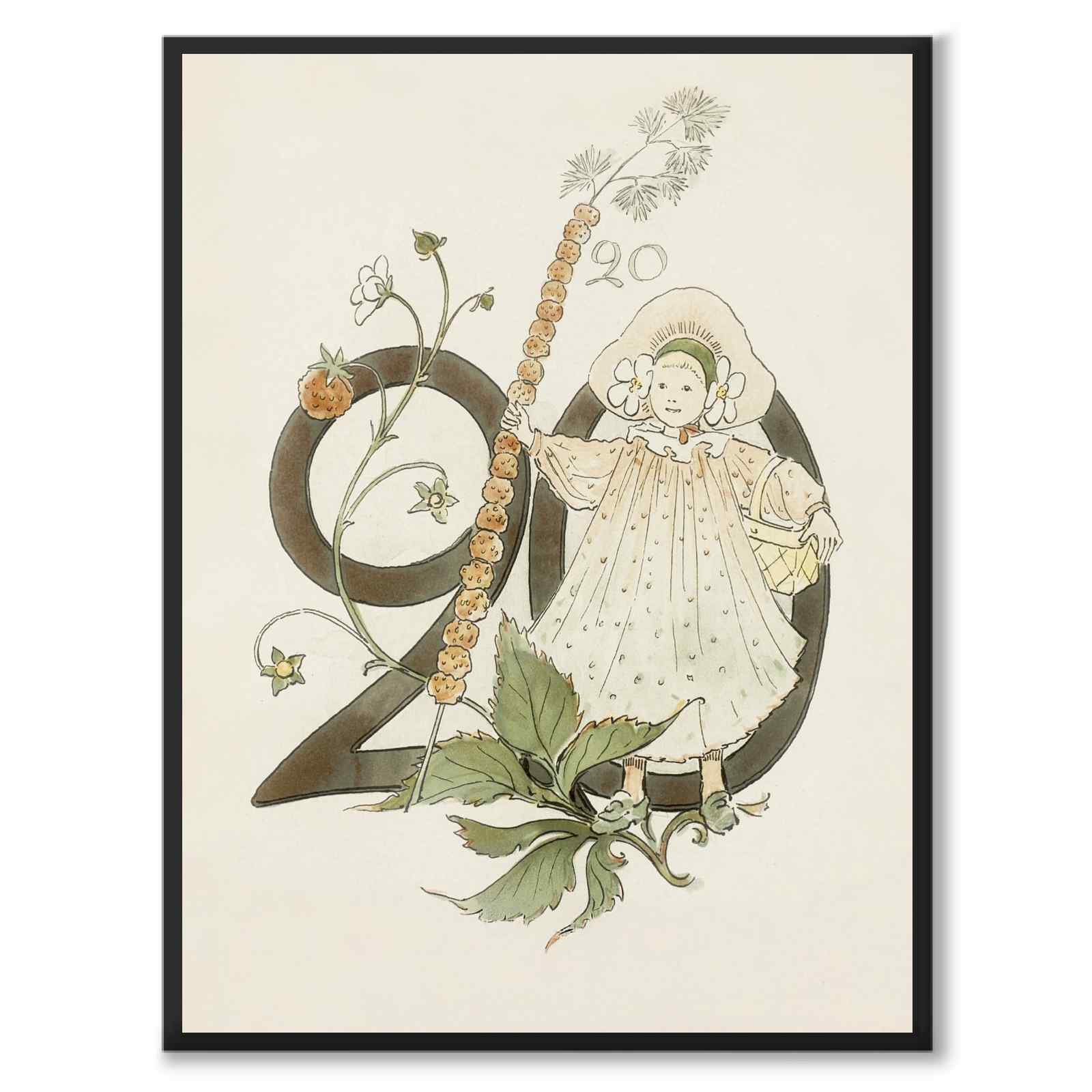 Poster med vackra Blomstersiffror av Ottilia Adelborg från 1894. Ottilia ritade blomstersiffrorna från 1 upp till och med 20, dels som individuella verk men också som en samlingsbild.