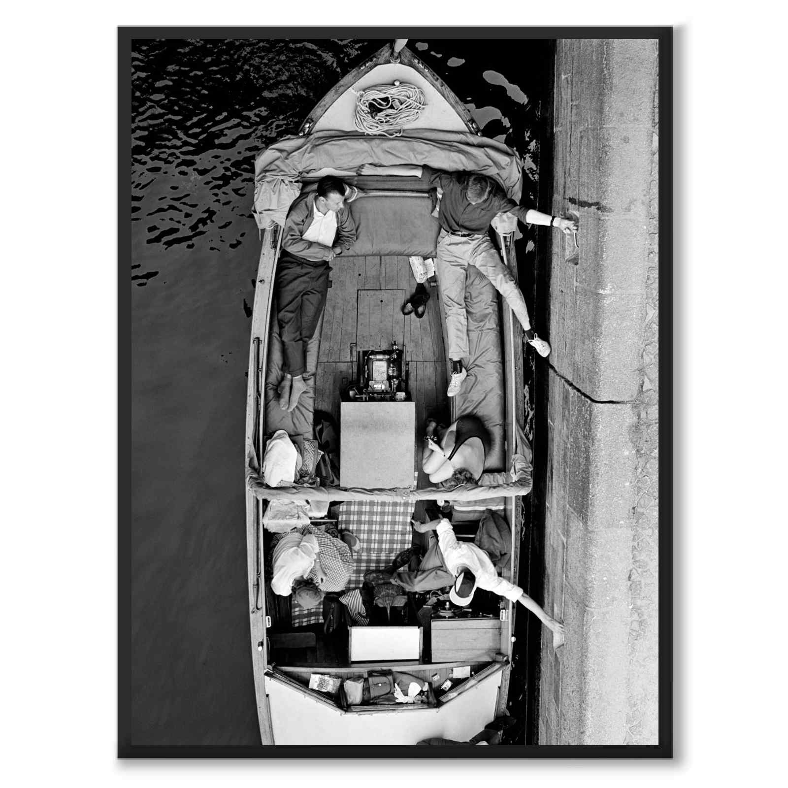 En härlig bild på ett gäng ungdomar som väntar på att slussas vidare på en båttur i en kanal någonstans i Sverige på 60-talet.