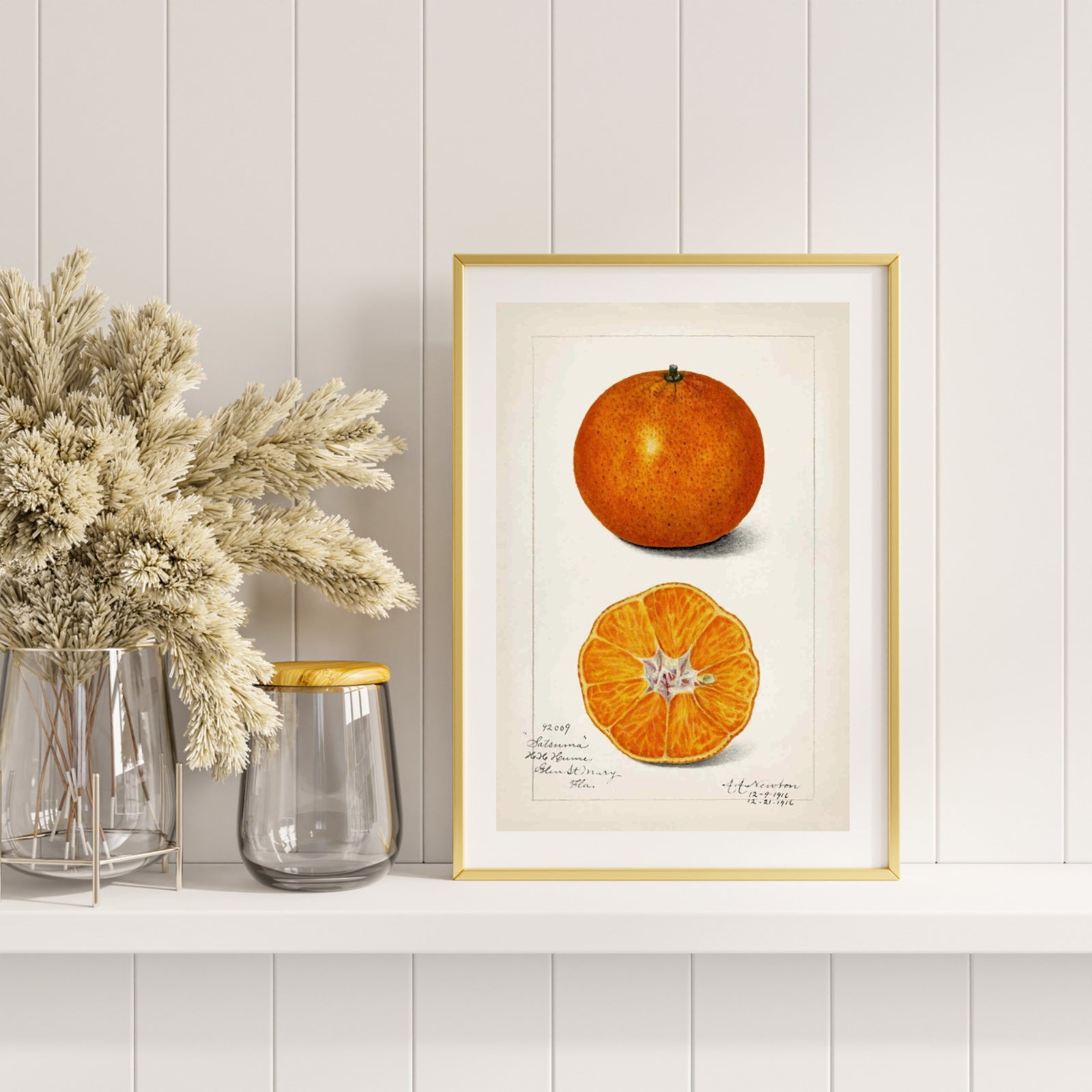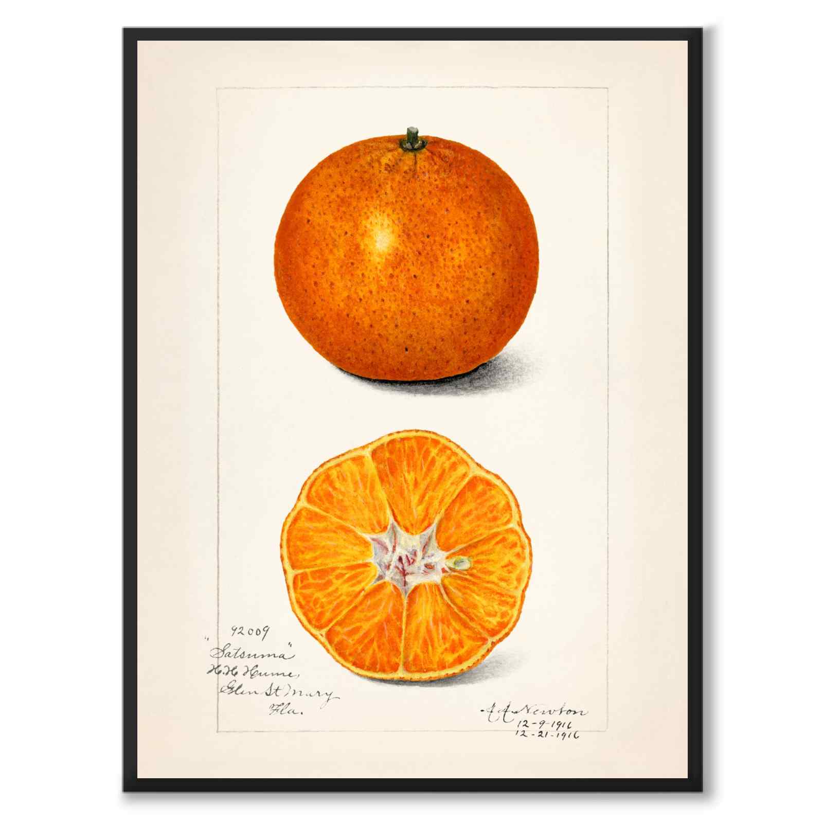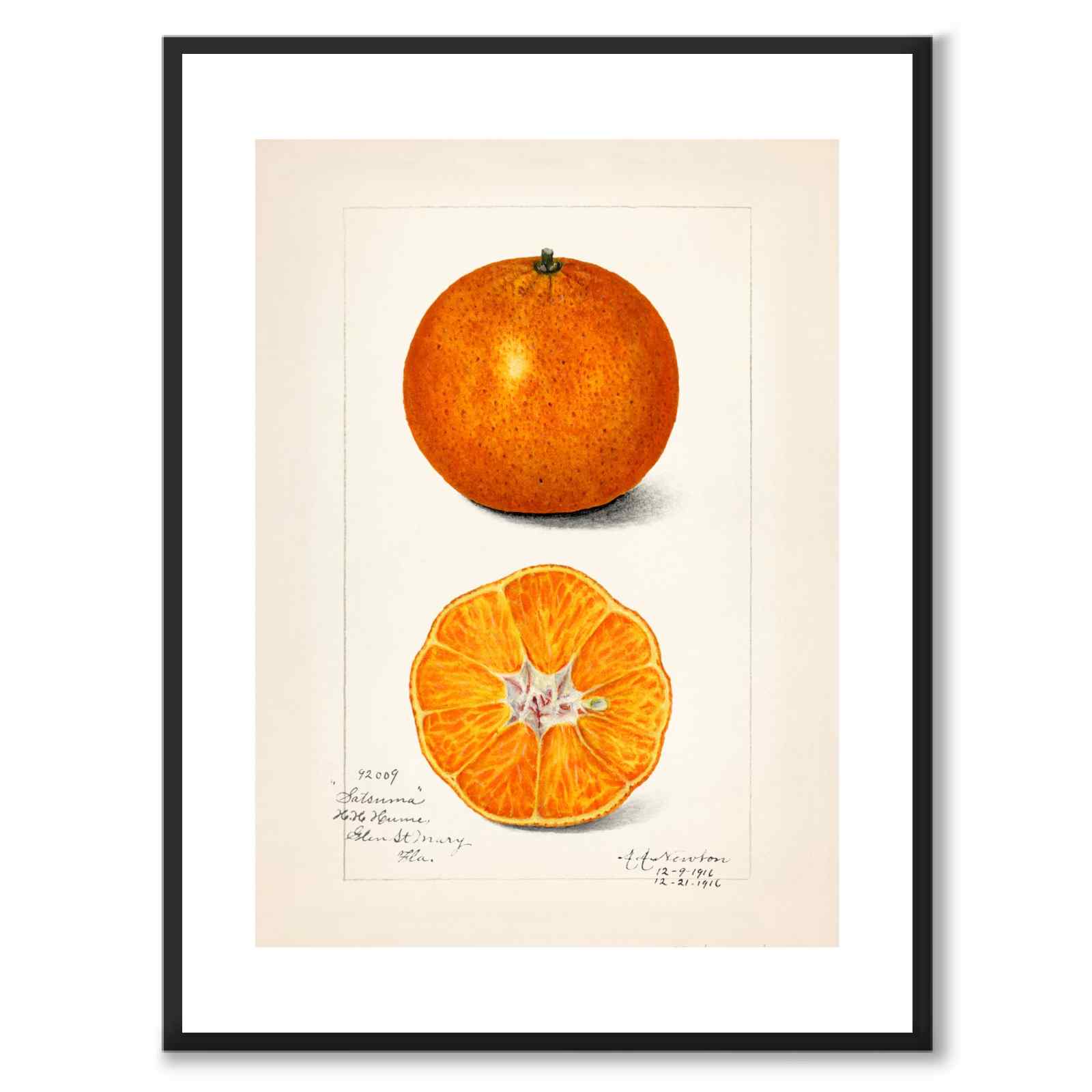 Poster med en klassisk illustration av apelsiner, på latin Citrus Sinensis, från år 1916.