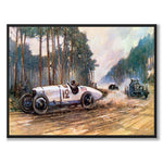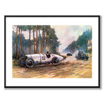 Poster med illustrationen "Crosby", ett verk av Frederick Gordon Crosby (1885-1943) som var en brittisk konstnär känd för sina dynamiska och dramatiska avbildningar av tidig motorsport.