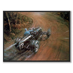 Poster med illustrationen "Crosby", ett verk av Frederick Gordon Crosby (1885-1943) som var en brittisk konstnär känd för sina dynamiska och dramatiska avbildningar av tidig motorsport.