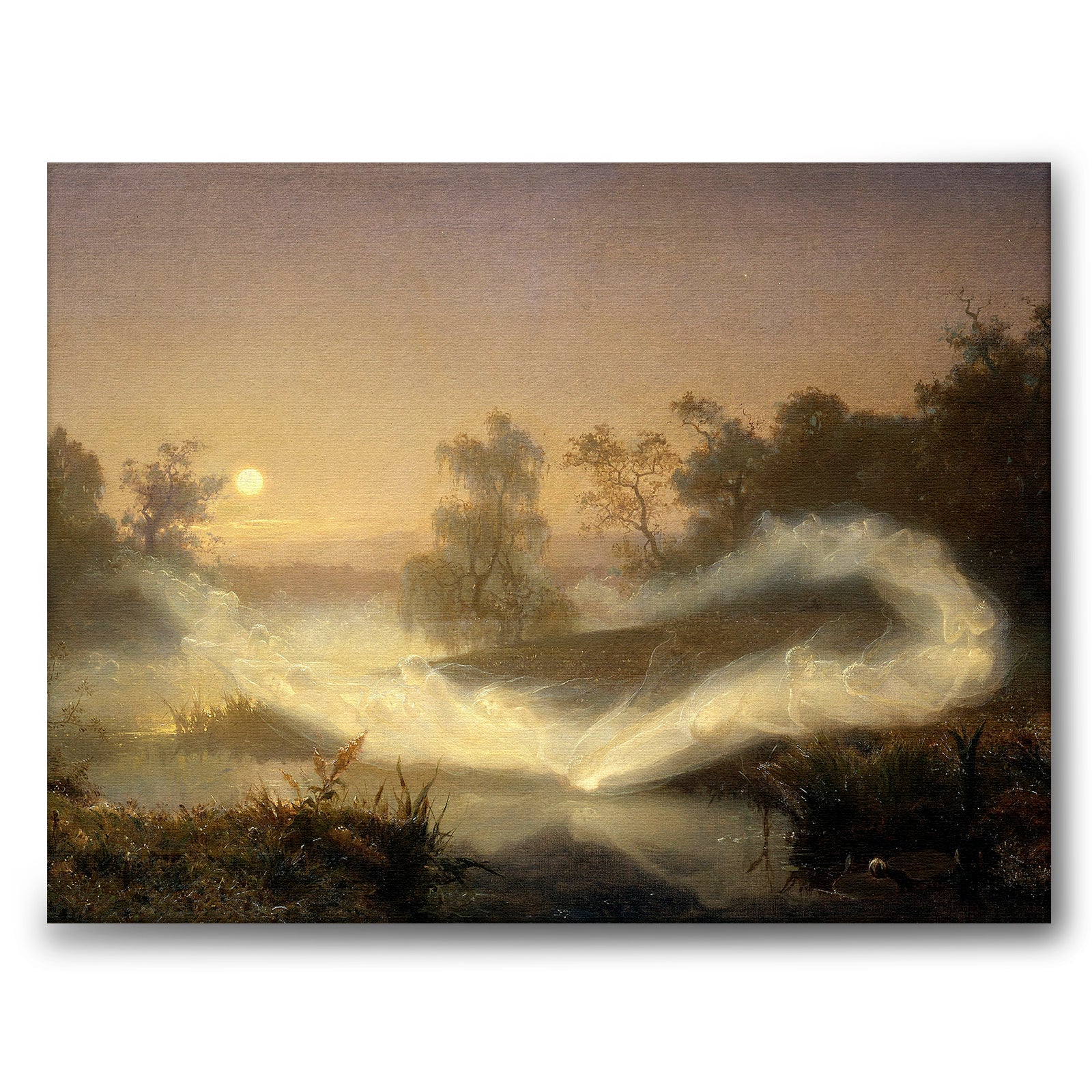 Canvas med August Malmströms mest kända verk, Älvalek från 1866. Fram till och med 1872 ägdes originalet av Kung Karl XV. Målningen föreställer älvdans, ett väderfenomen där fuktig luft kondenserar och bildar mikroskopiska vattendroppar som håller sig svävande. I gammal folktro trodde man att dimman var dansande älvor. Enligt folktron levde älvor i naturen och kunde ses dansa på kullar, berg och skogar. Älvor var vackra men farliga och kunde göra människor sjuka.