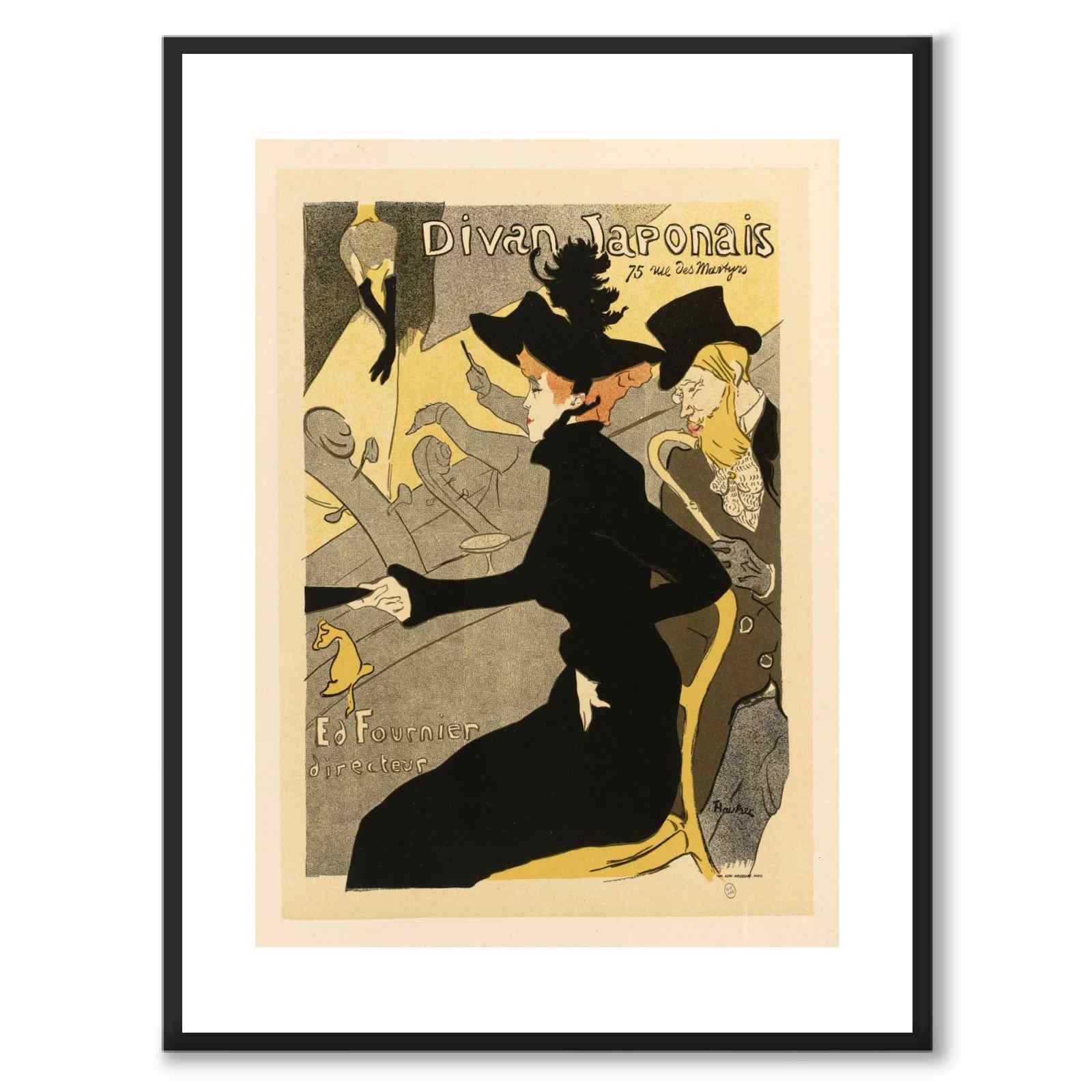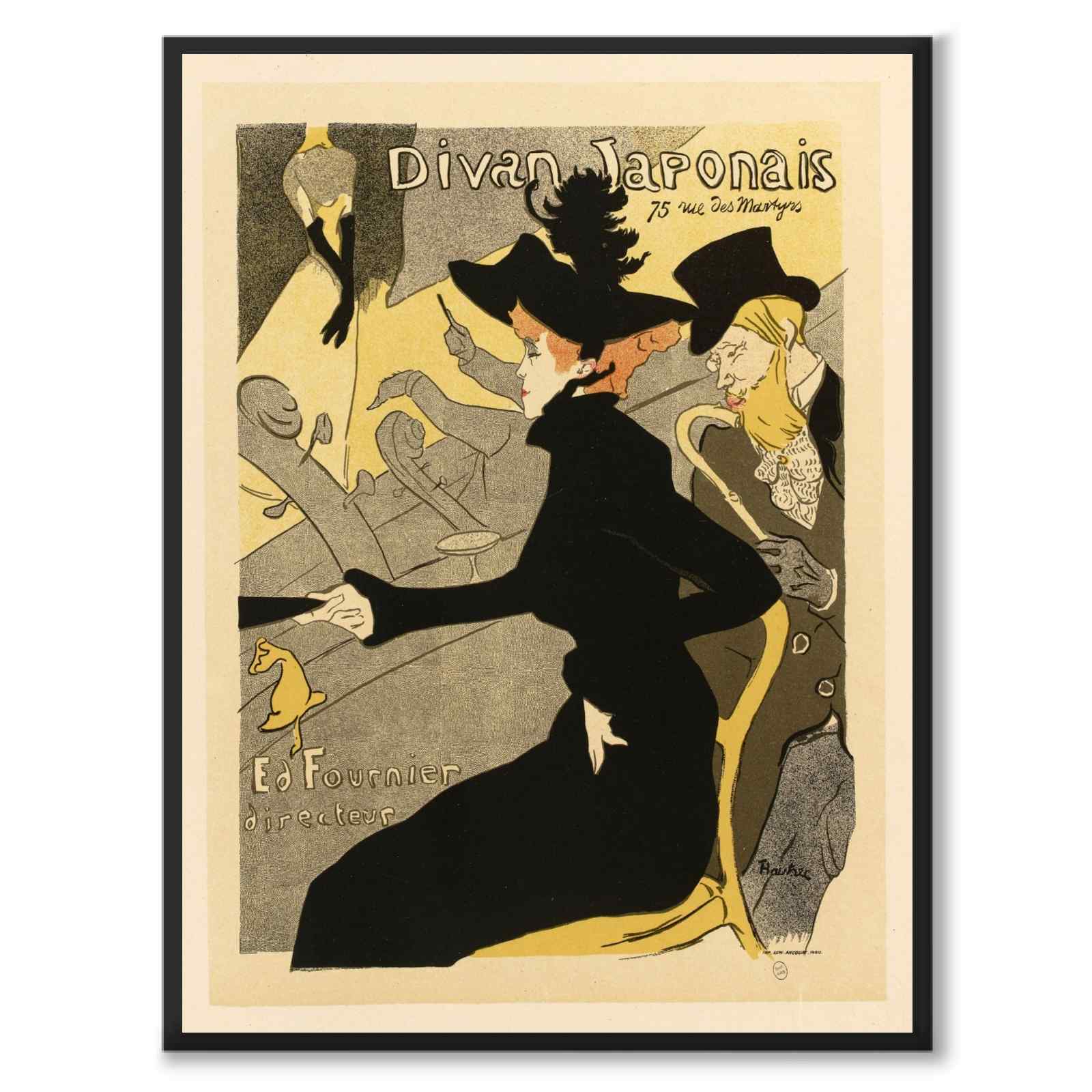 Affischen marknadsför en kabaré eller nöjesetablissemang vid namn Divan Japonais, som var en populär plats för musik, dans och underhållning.