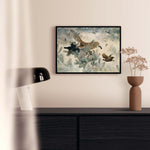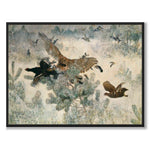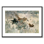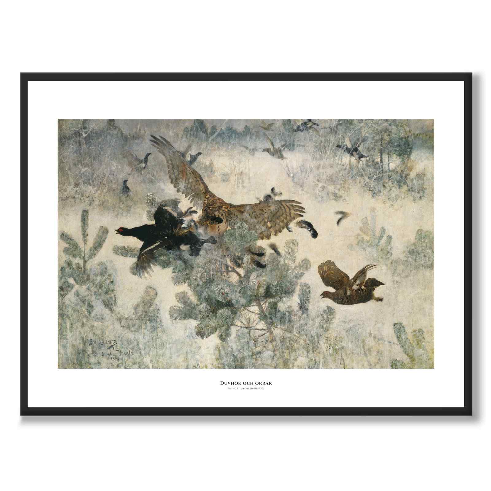 Poster med målningen Duvhök och orrar av Bruno Liljefors från år 1884.