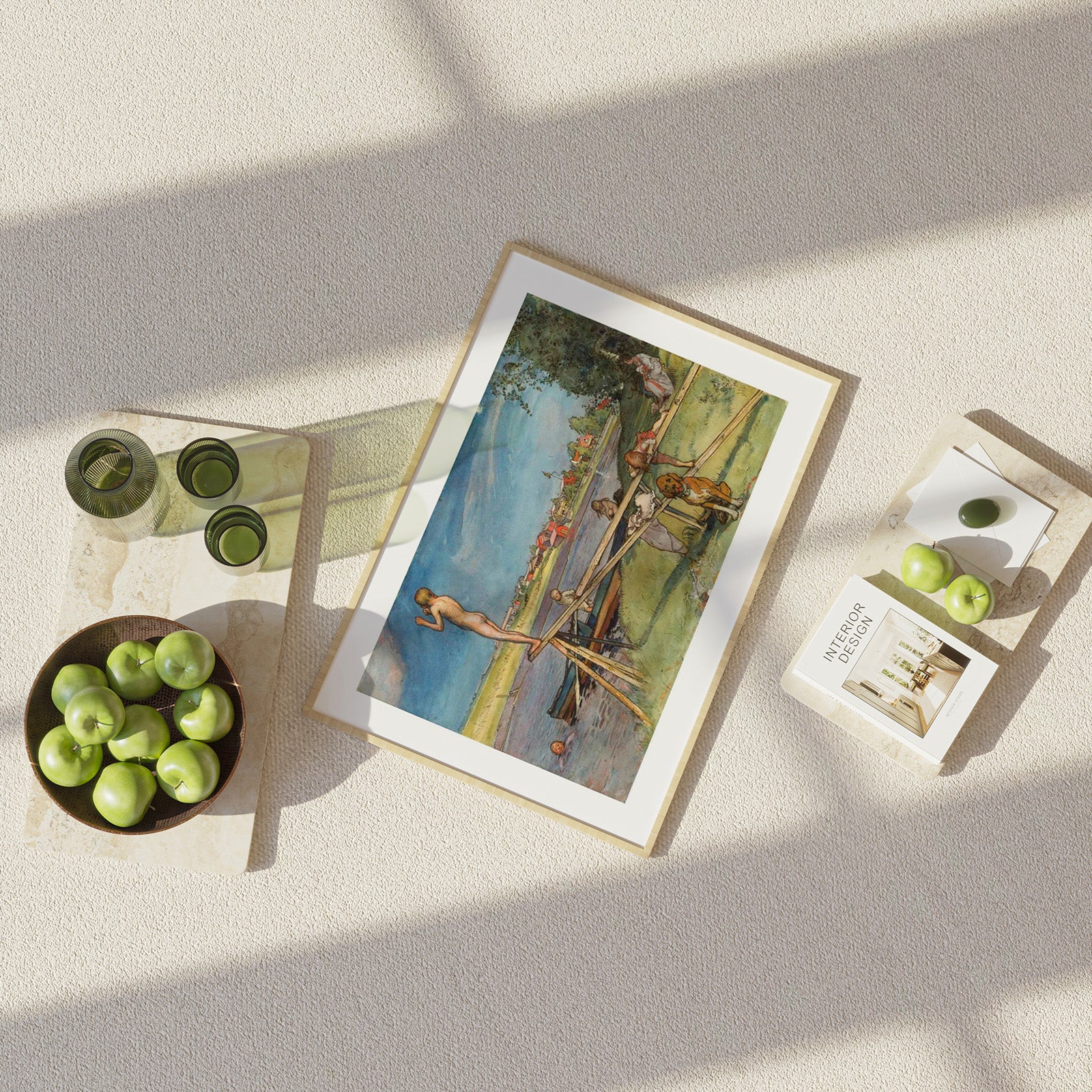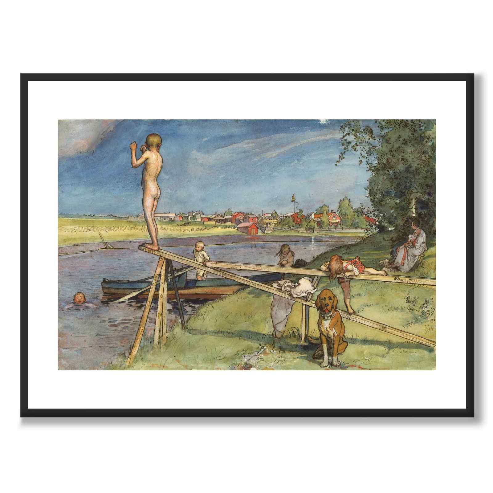 Poster med den somriga akvarellmålningen Ett Bra Badställe av Carl Larsson från år 1896. Verket publicerades som en del av “Ur Ett hem (26 akvareller)” år 1899.