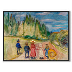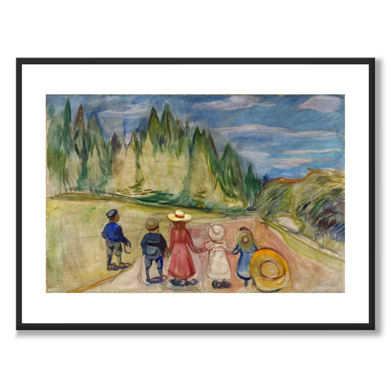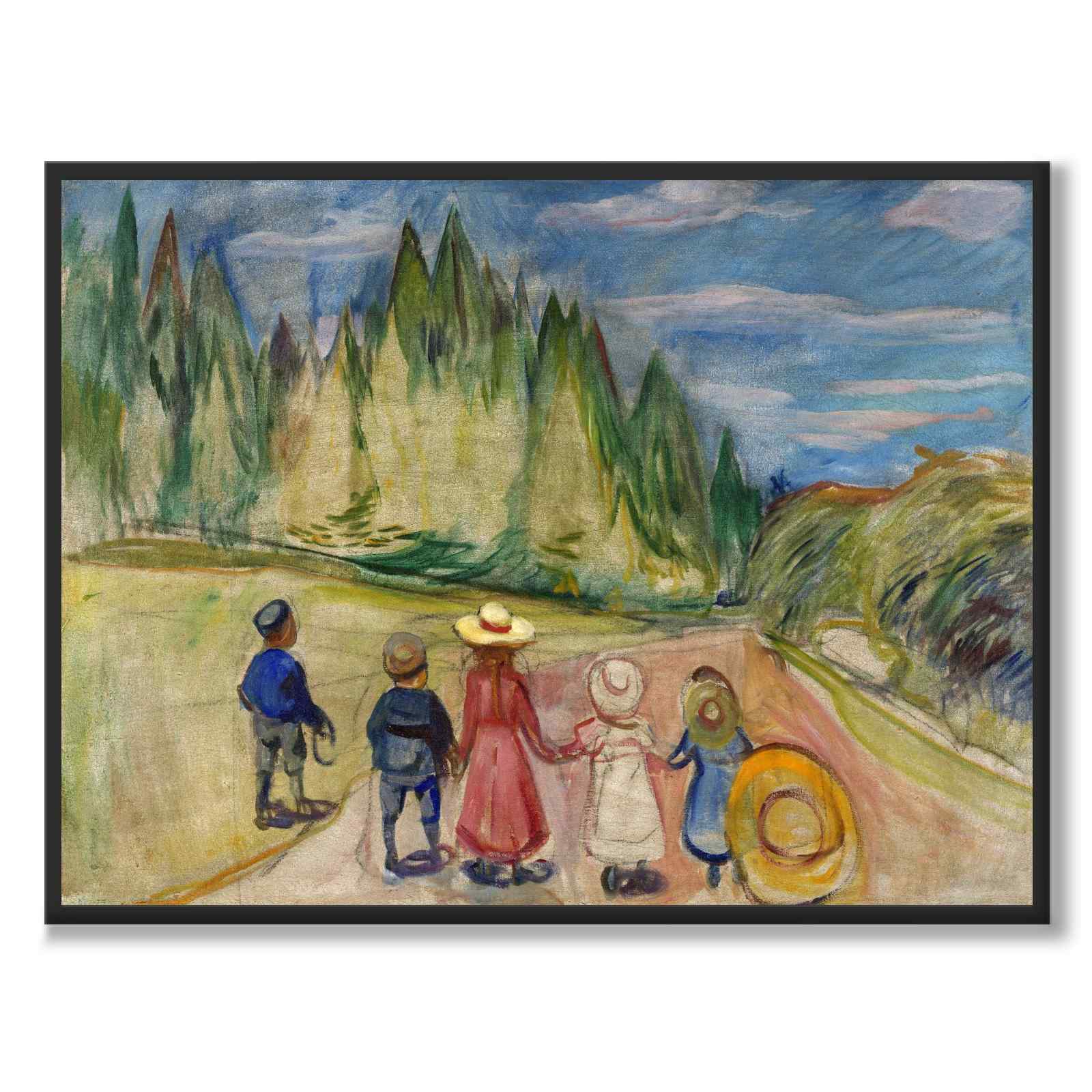 Målningen skildrar en grupp människor som går framåt längs en väg, med en bakgrund som består av ett landskap med höga träd och ett öppet fält. Genom att porträttera dessa människor i rörelse mot ett okänt mål, försöker Munch att symbolisera livets resa och de val vi alla måste ta.