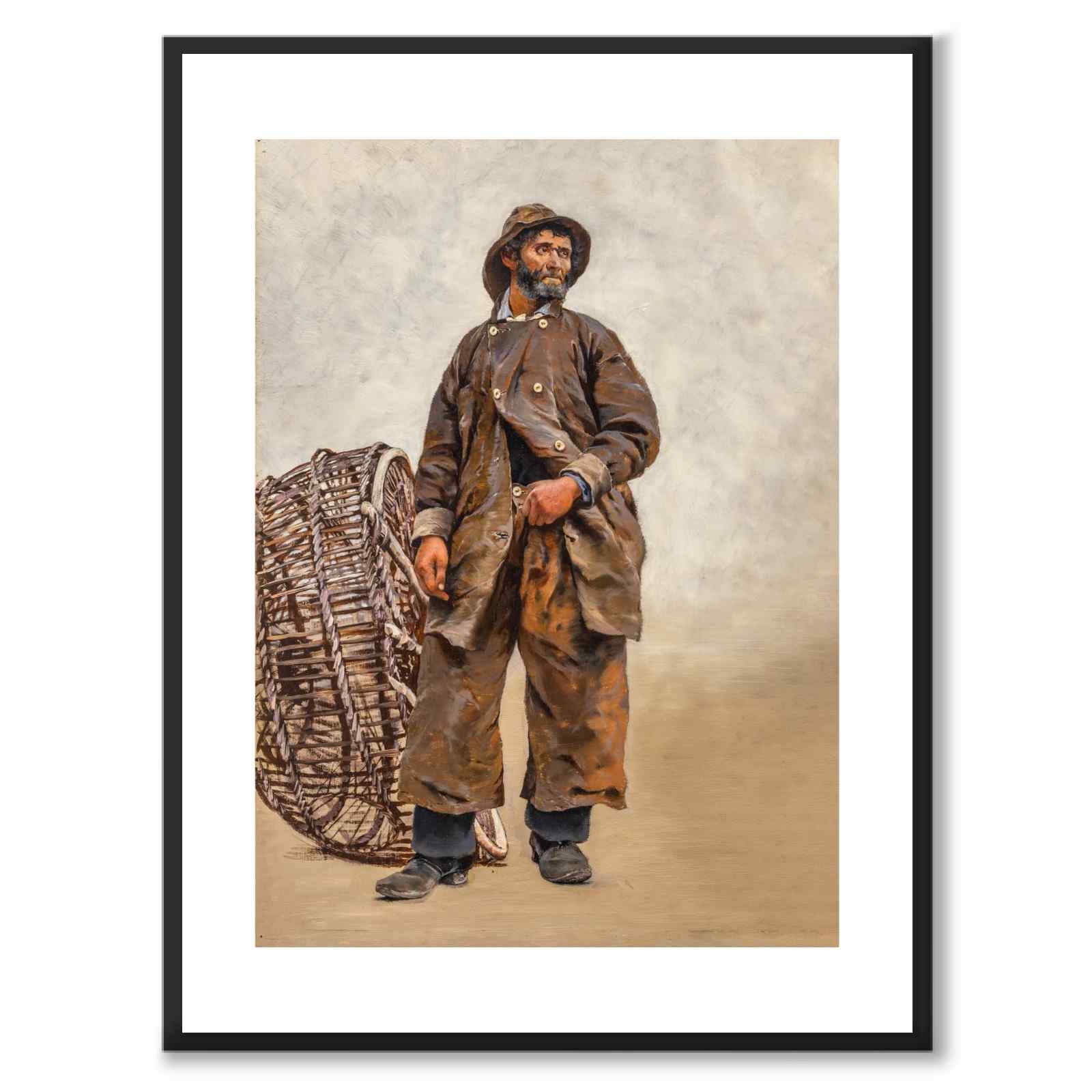 Poster med den vackra målningen Fiskare med Korg av den svenska konstnären August Hagborg från 1881.