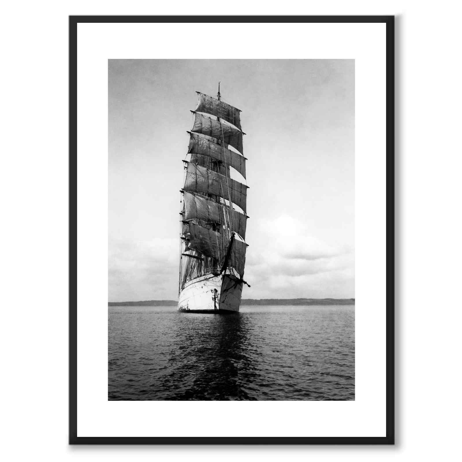 Poster med ett fotografiet "Fullriggare" som visar ett fullriggat segelfartyg som kommer rakt emot kameran. Fotot är taget från tidigt 1900-tal.