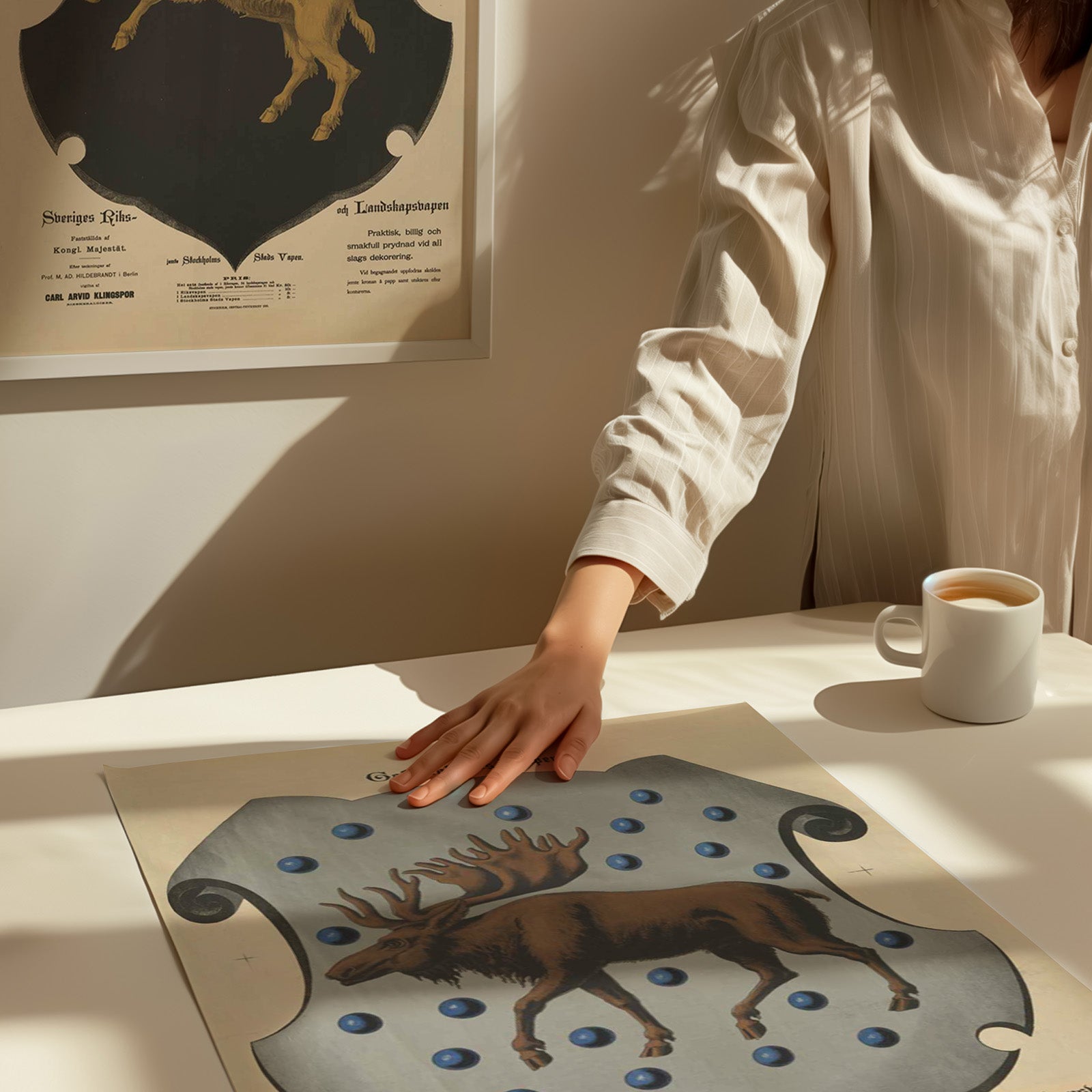 En vacker ritning med det heraldiska vapnet för landskapet Gästrikland från 1800-talet.