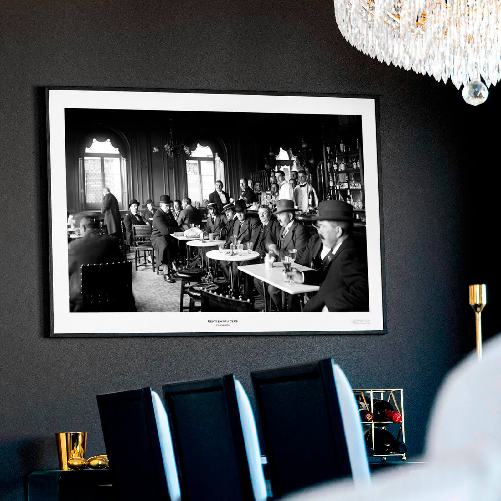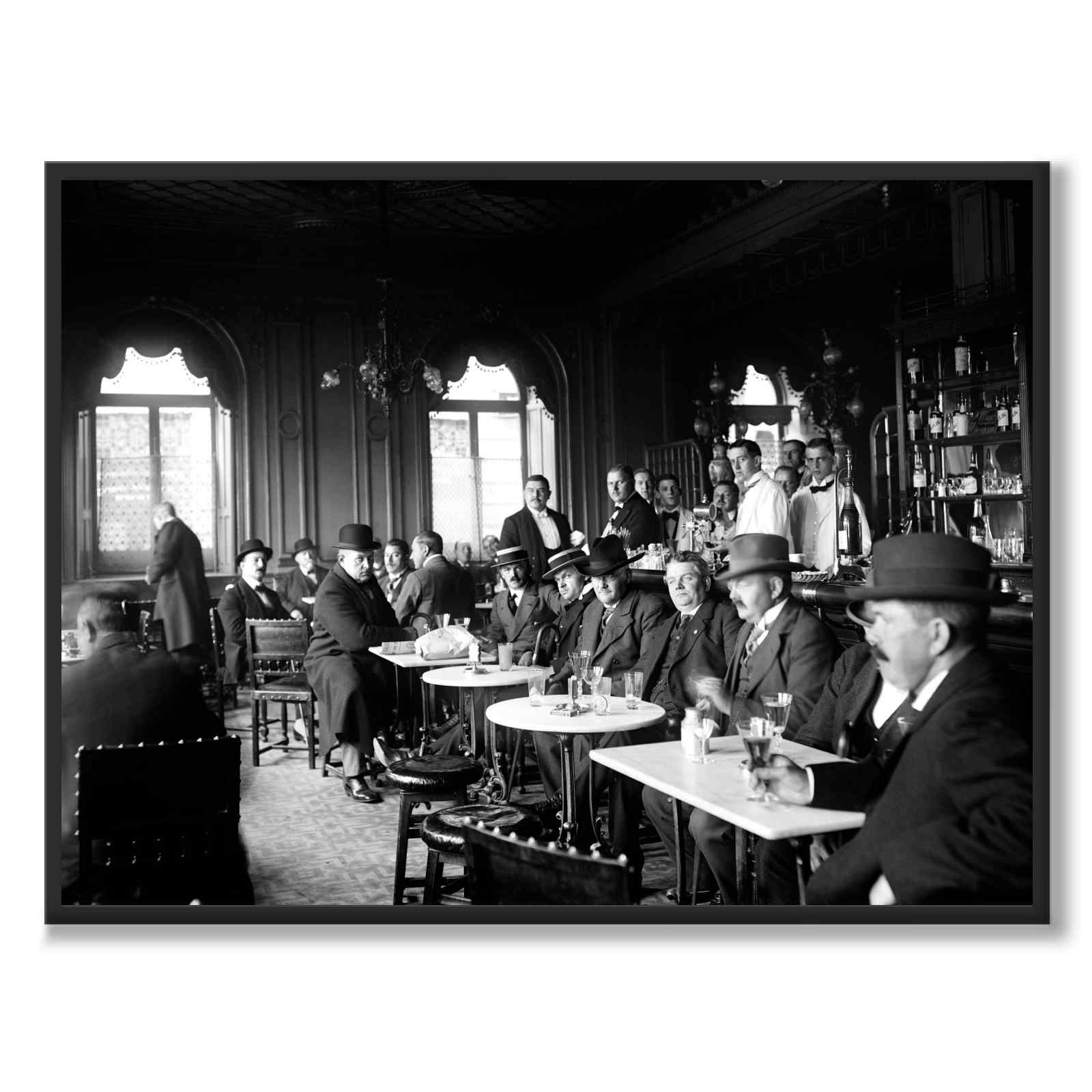 På fotografiet ser vid gäster och personal i samband med att baren stängdes i september år 1914. Bland gästerna ser vi bland annat operasångaren Oscar Bergström sittande som tredje person från höger.