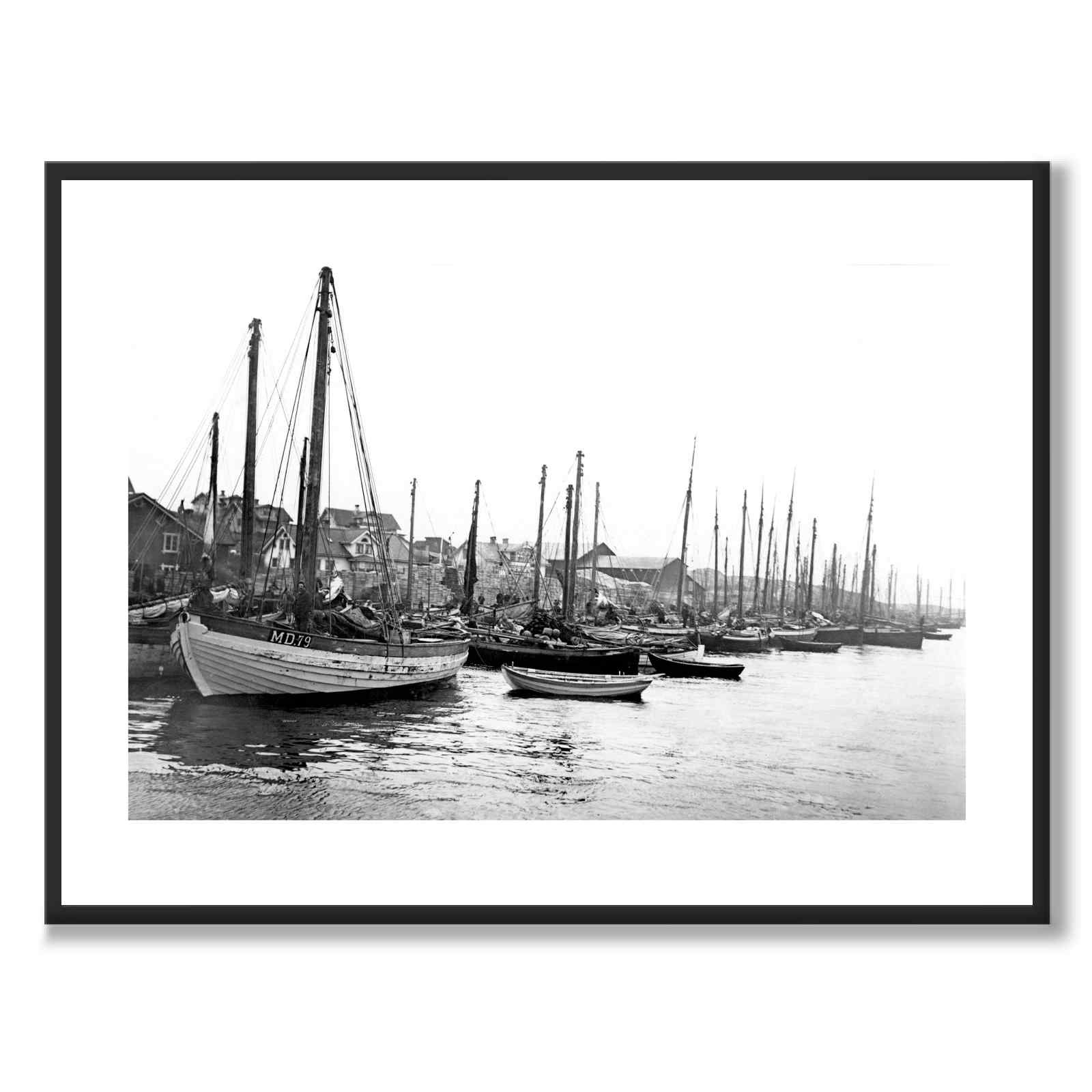 Fiskebåten närmast har distriktsbeteckningen MD 79 och är registrerad med hemmahamn Rönnäng, en tätort i Tjörns kommun.