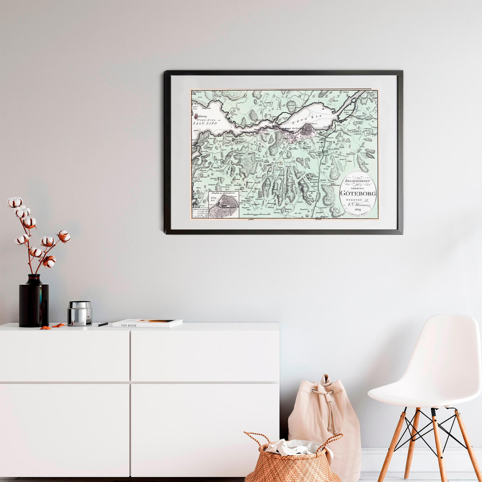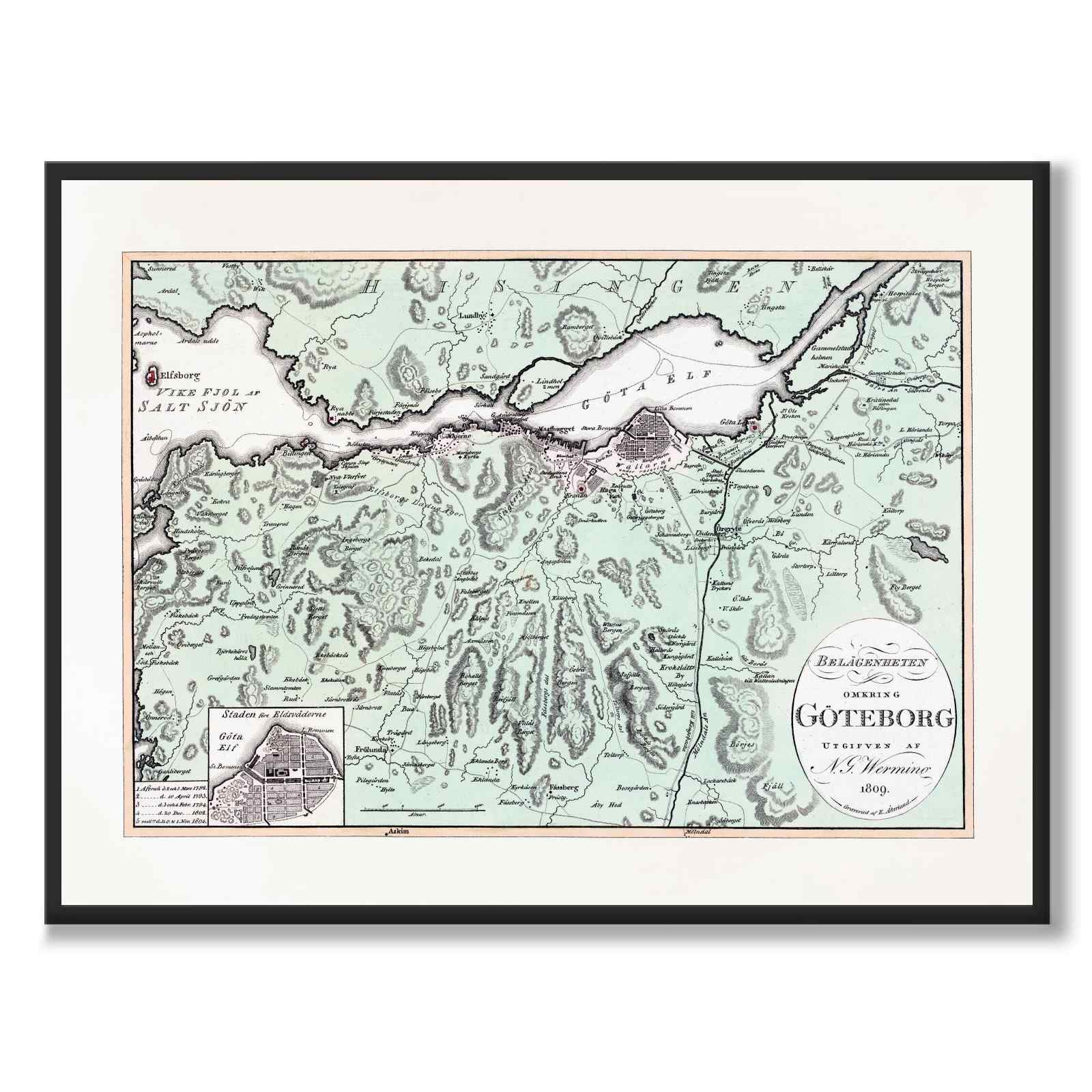 Poster med en gammal karta över Göteborg år 1809.
