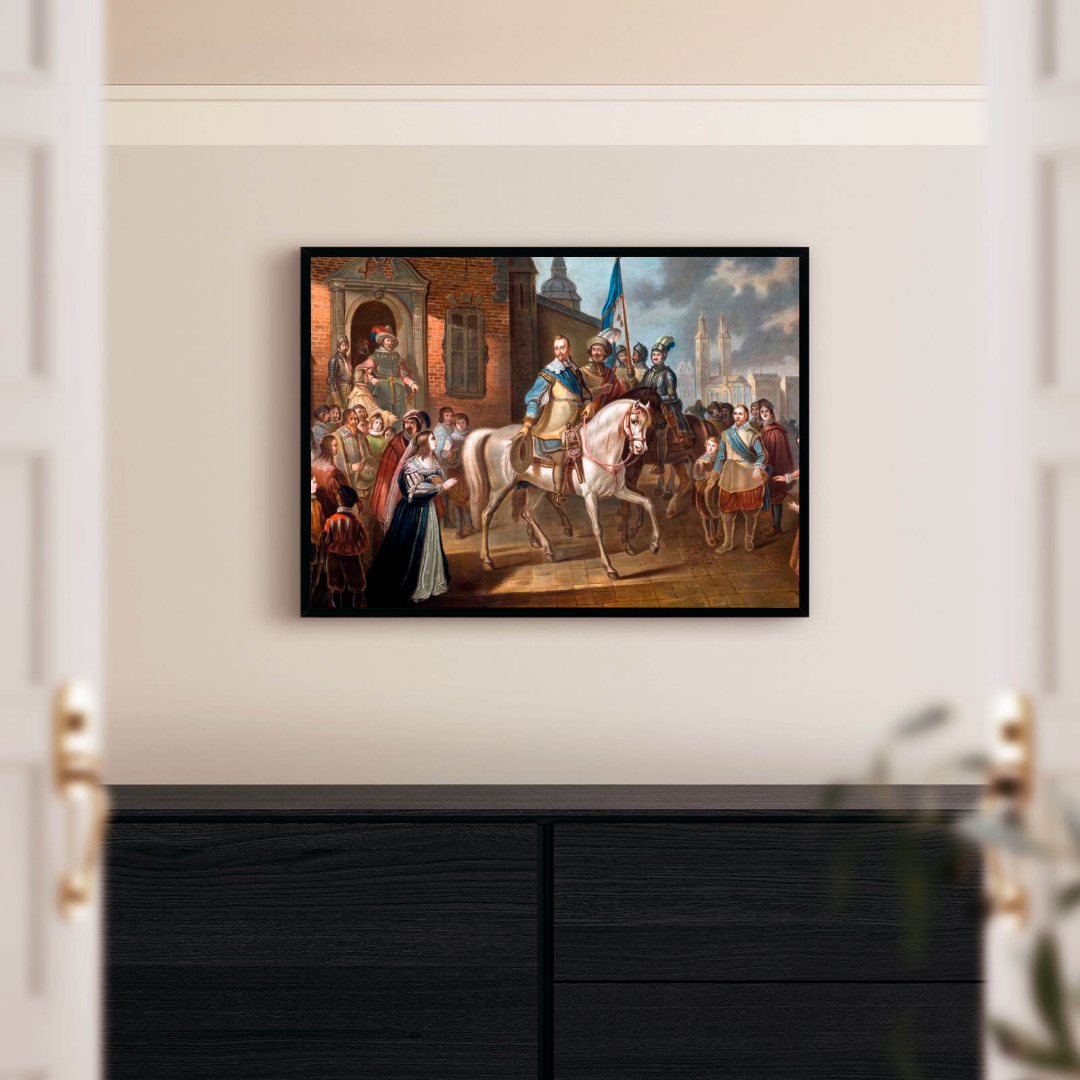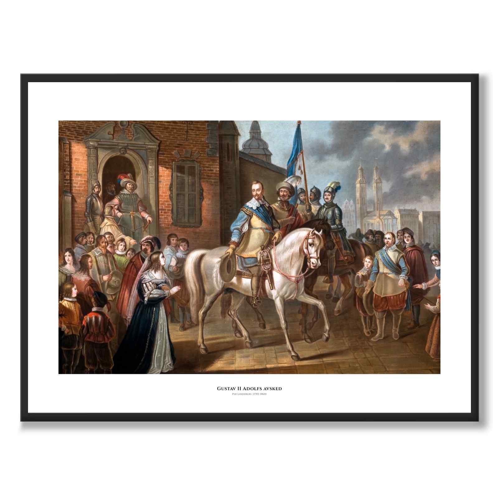 Poster med motiv av målningen Gustav II Adolfs avsked skapad av Per Lindberg 1838.