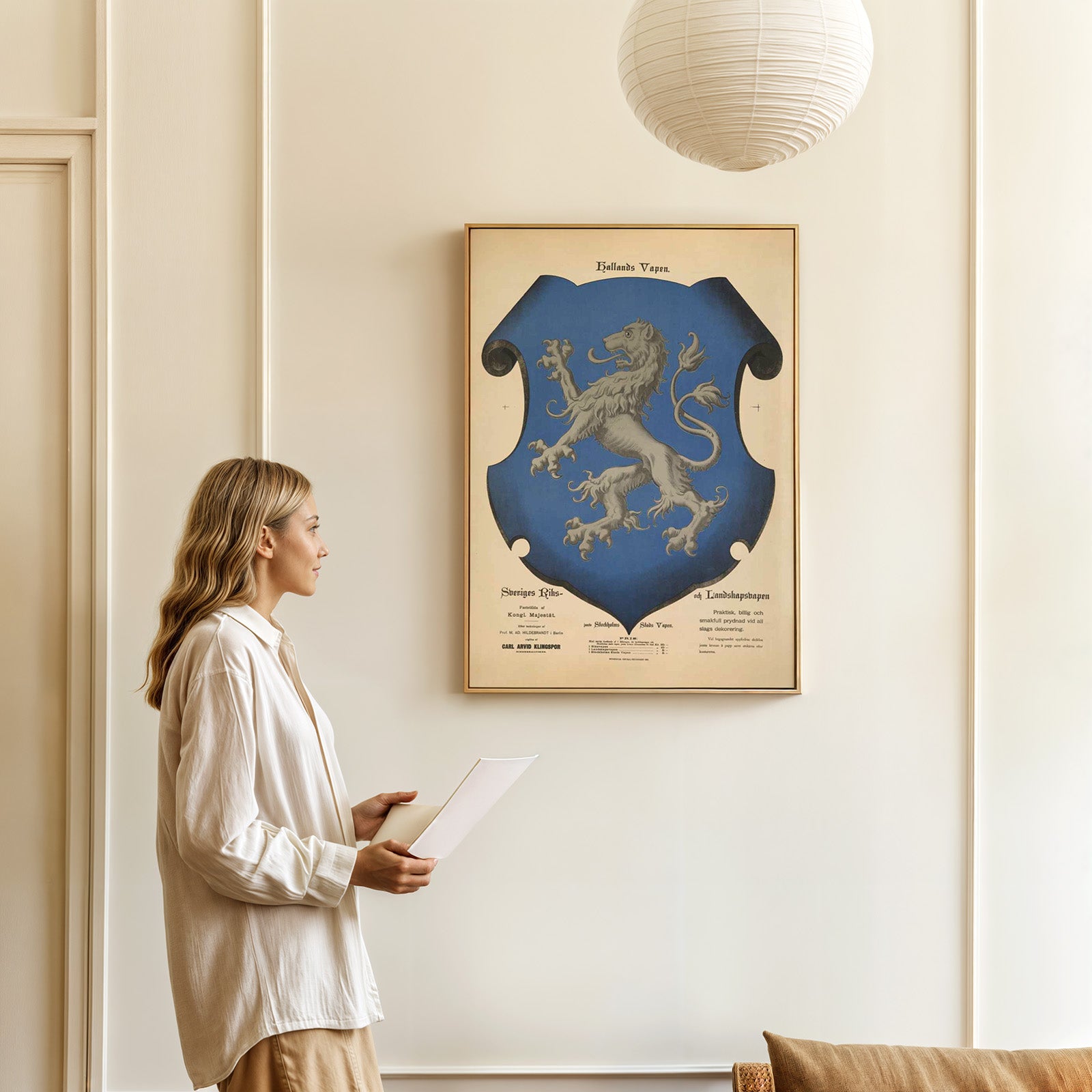 En vacker ritning med det heraldiska vapnet för landskapet Halland från 1800-talet.