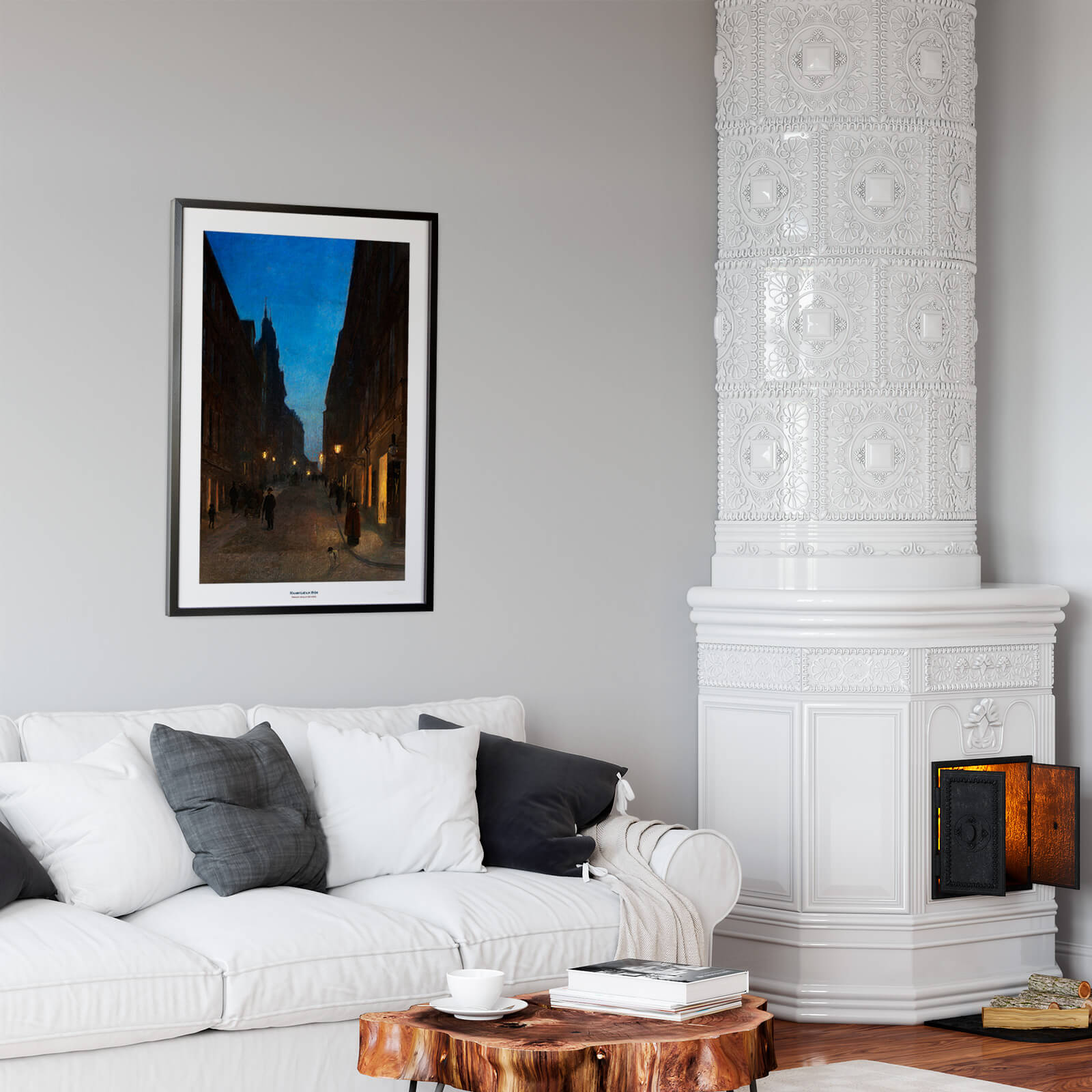 Hamngatan som fick sitt nuvarande namn år 1857 ligger intill Kungsträdgården och Norrmalmstorg och har länge varit ett centrum för handel och nöjesliv. En stämningsfull kvällsbild av ett tidtypiskt liv i sekelskiftets Sverige.