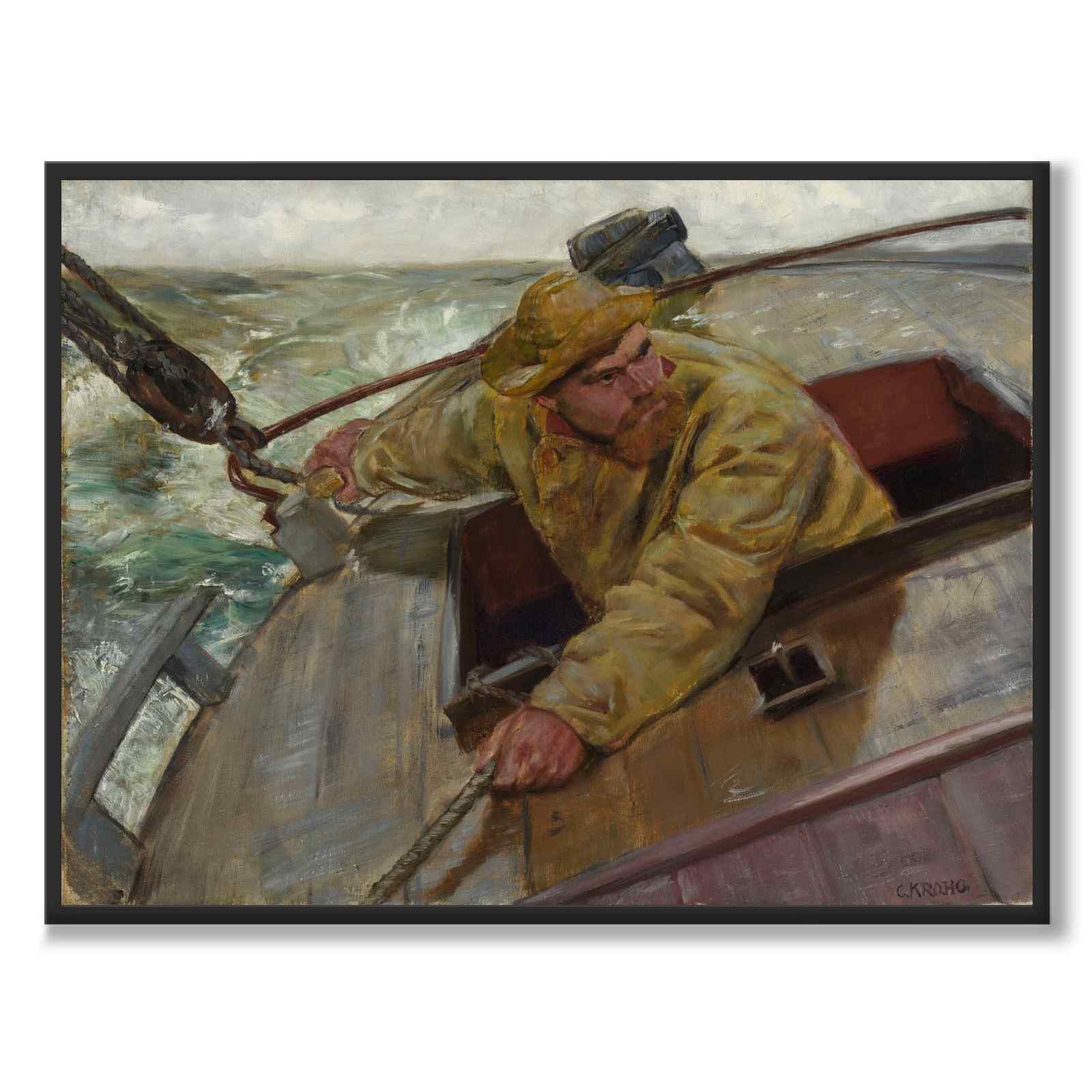 Poster med målningen "Hardt le" av den norske konstnären Christian Krohg (1852-1925) som är känd för sina realistiska skildringar av livet i Norge, särskilt inom marinmåleri och socialt engagerade verk.