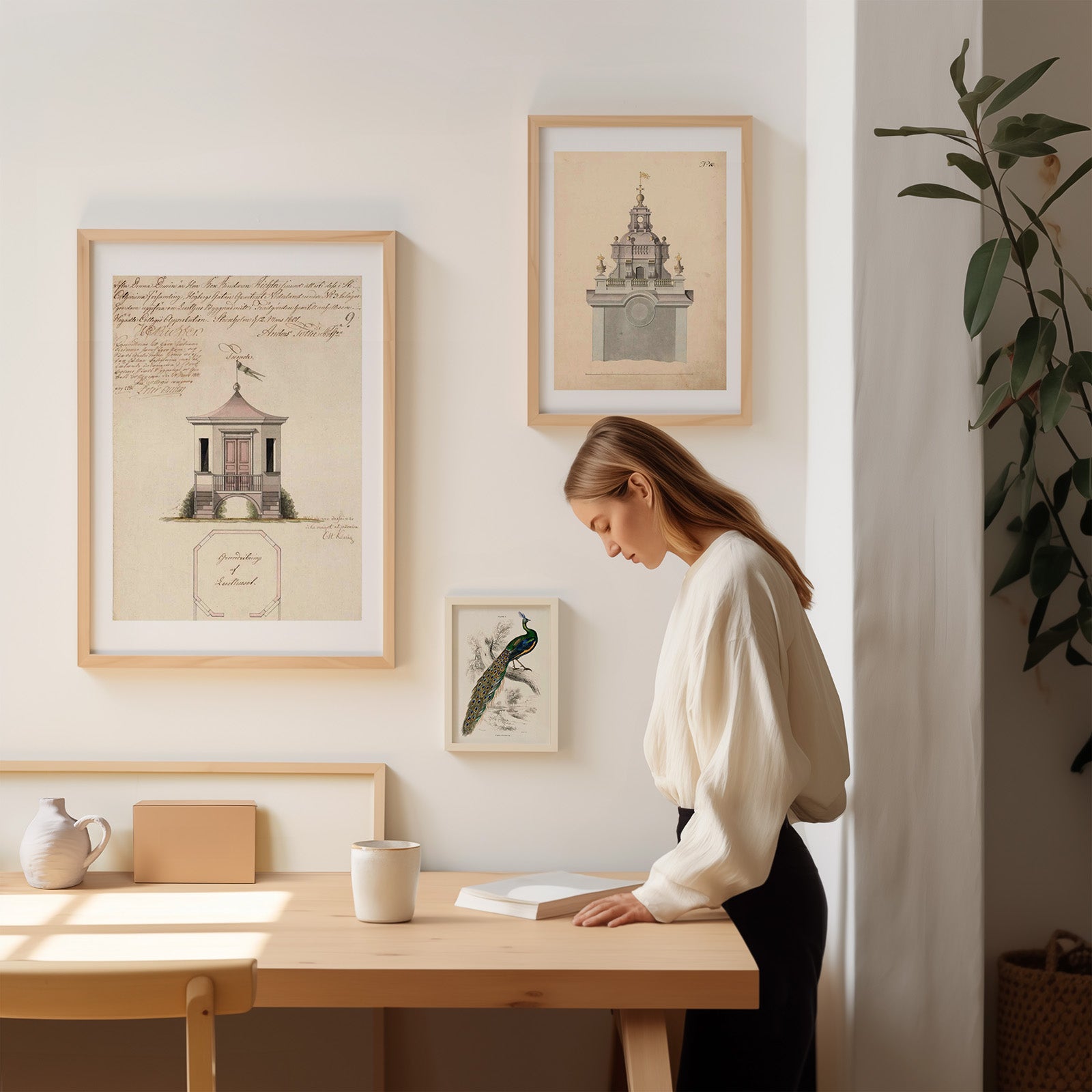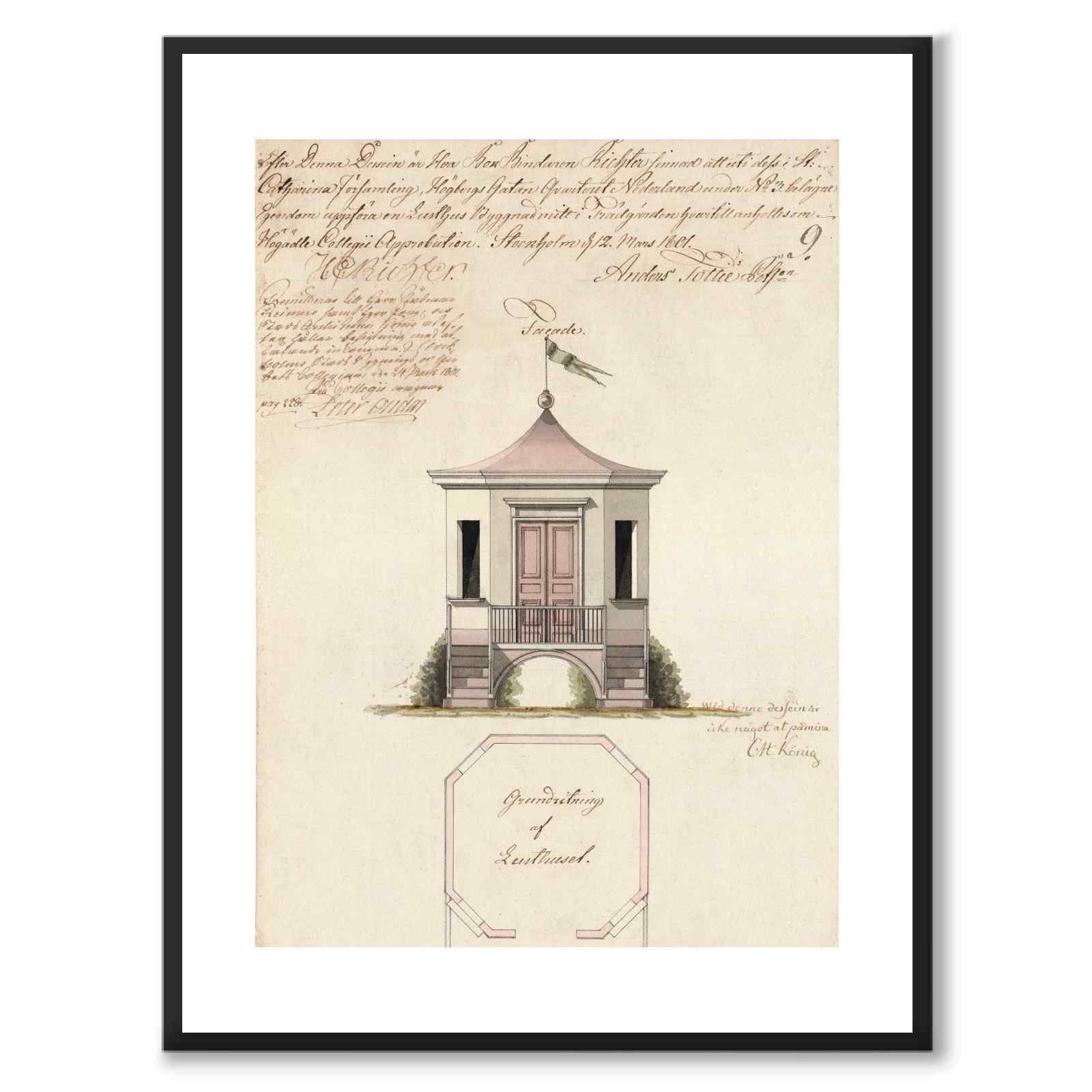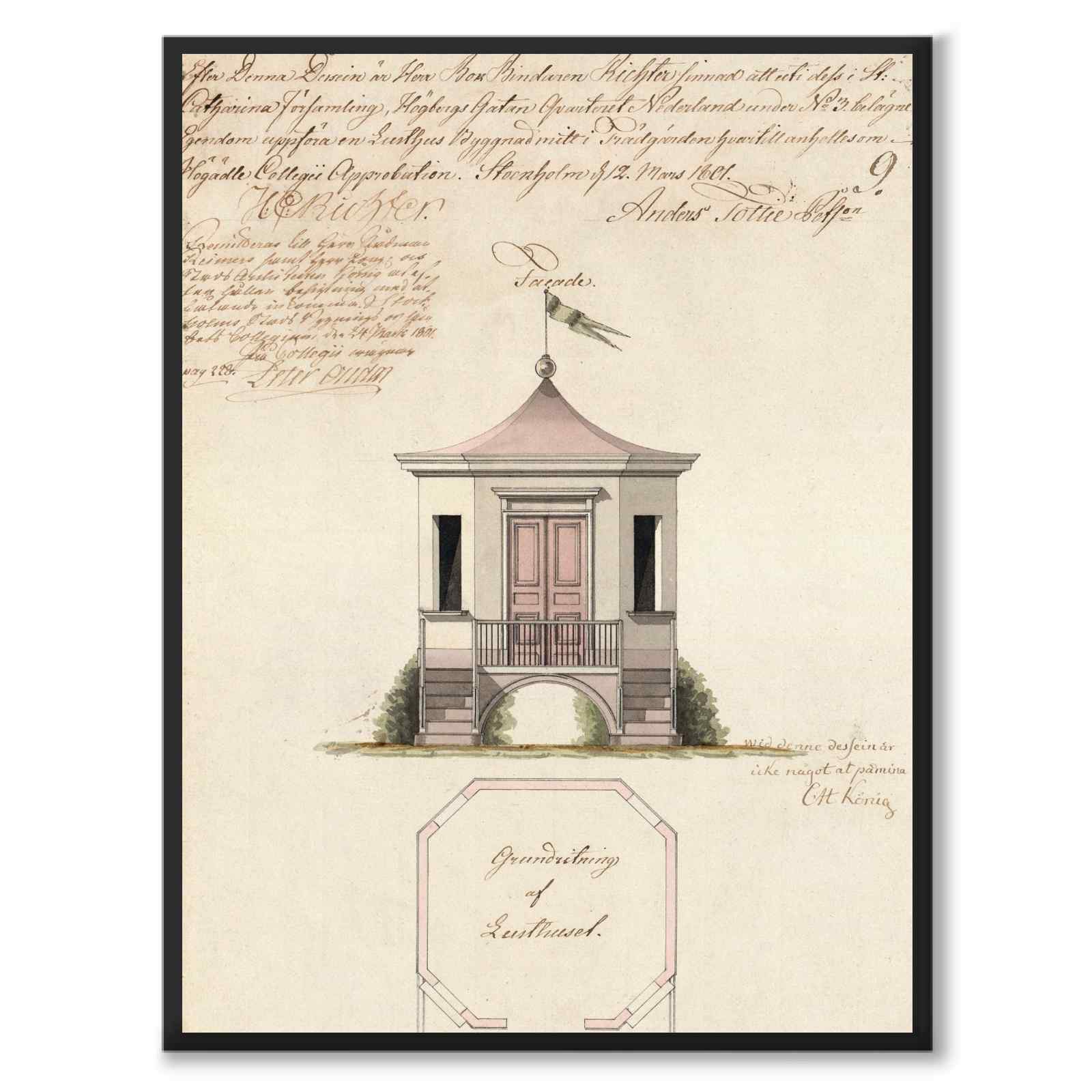 Postern visar en ritning över ett lusthus av Anders Tottie P:son år 1801. Detta lilla, tempelliknande lusthus var tänkt att stå ”mitt i trädgården” i kvarteret Nederland 3 på Högbergsgatan 3, Stockholm. Beställaren av byggnaden var bokbindaren Richter, som ville skapa en charmig och elegant plats för rekreation i sin trädgård.
