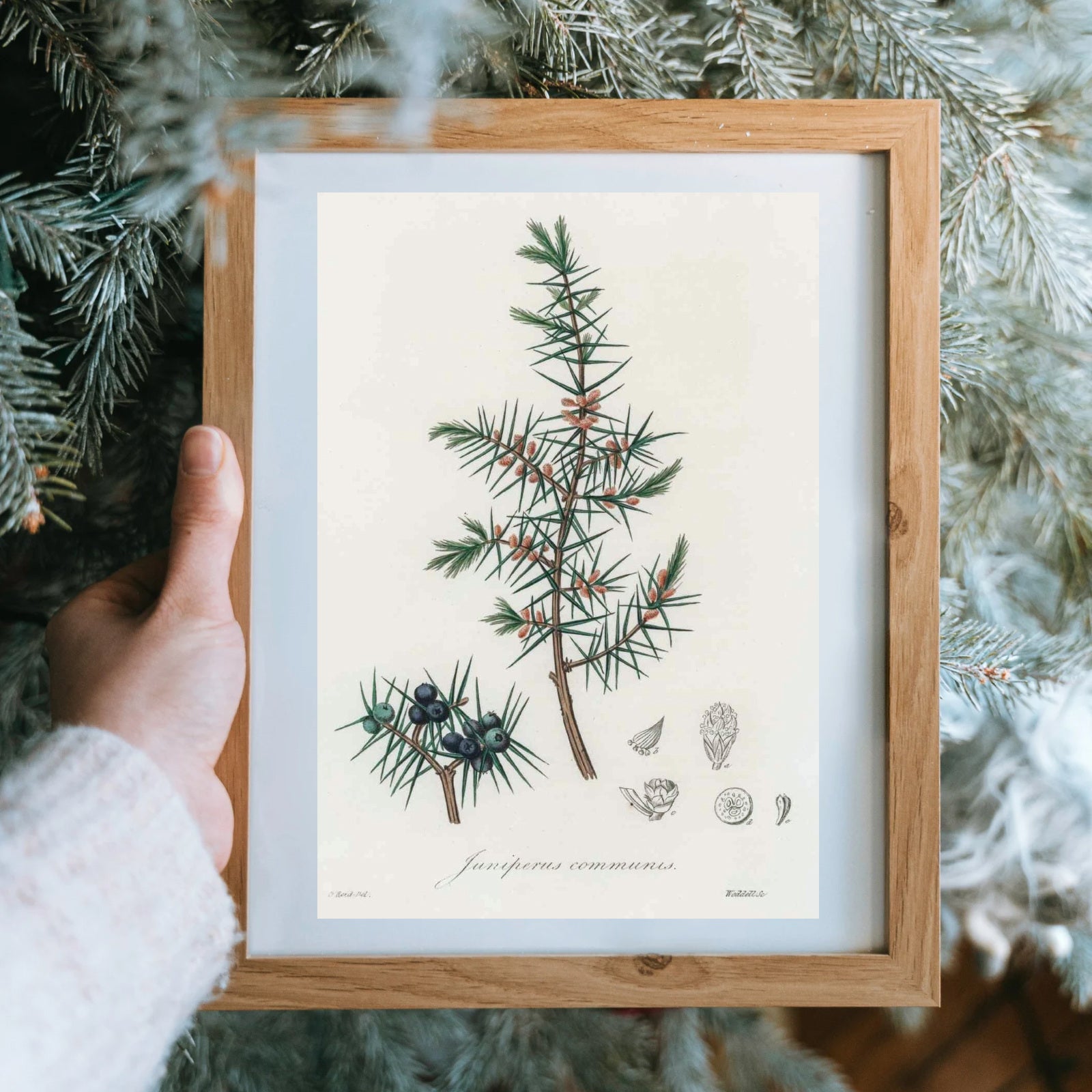 Poster med motiv av illustrationen Juniperus communis, även känt som enbärsbuske, från 1800-talet.