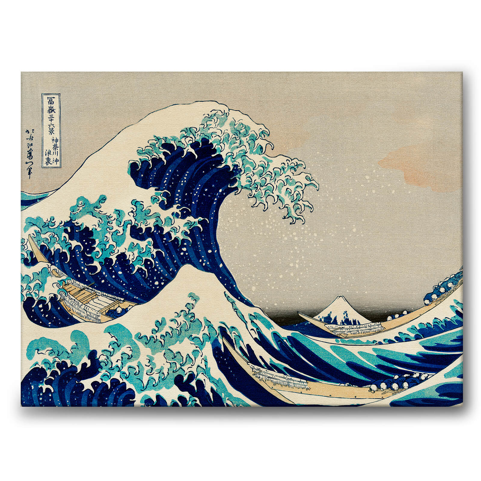 Verket är en traditionell japansk Ukyio-e-stilillustration av extrema vågor som bär ner på tre bräckliga båtar på Stilla Oceanen vid japanska huvudön Honshu med Fuji-berget i bakgrunden. Vågen föreställer troligtvis en monstervåg "okinami". De avbildade båtarna fraktar fisk från de södra öarna till Edo.