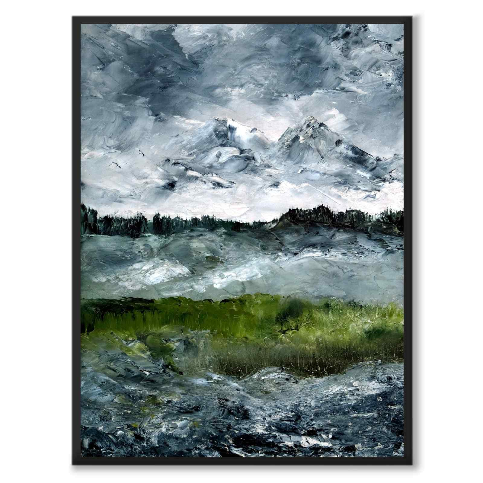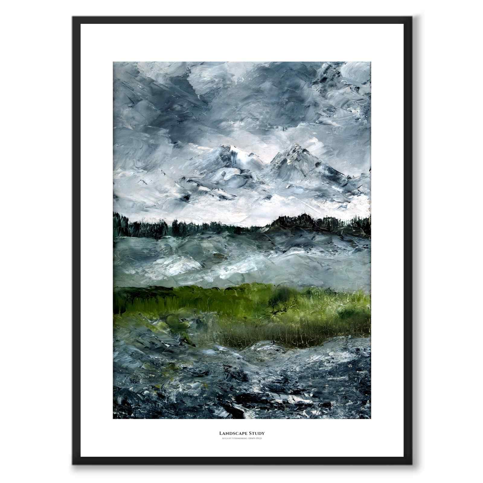 Poster med en målning av den ikoniska svenska konstnären och författaren August Strindberg från 1905 . Målningen heter Landscape Study och är också känd som Alplandskap II. På bilden ser vi ett vackert alplandskap med fjälltoppar täckta av snö. Bilden har ett fantastiskt djup som bjuder in betraktaren.