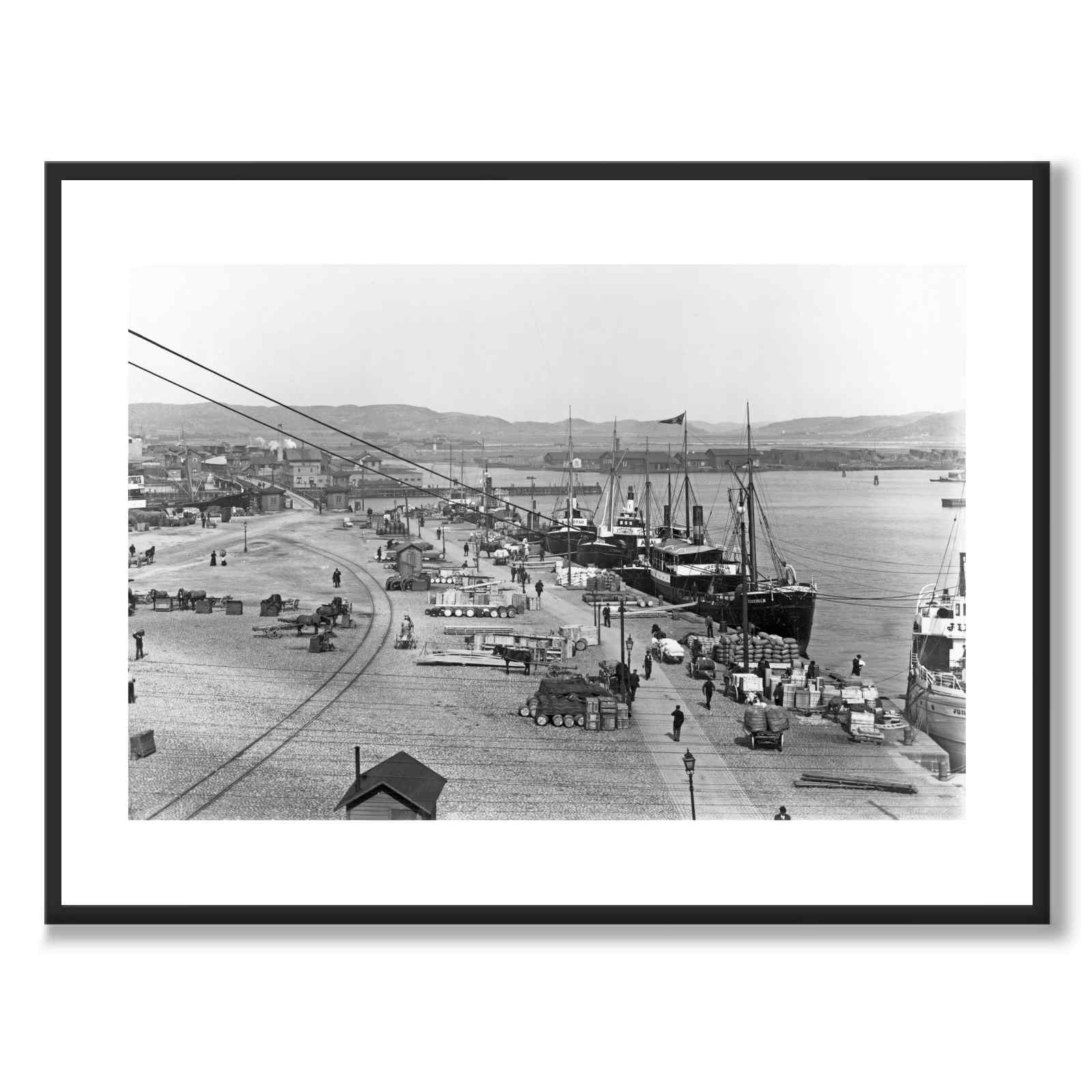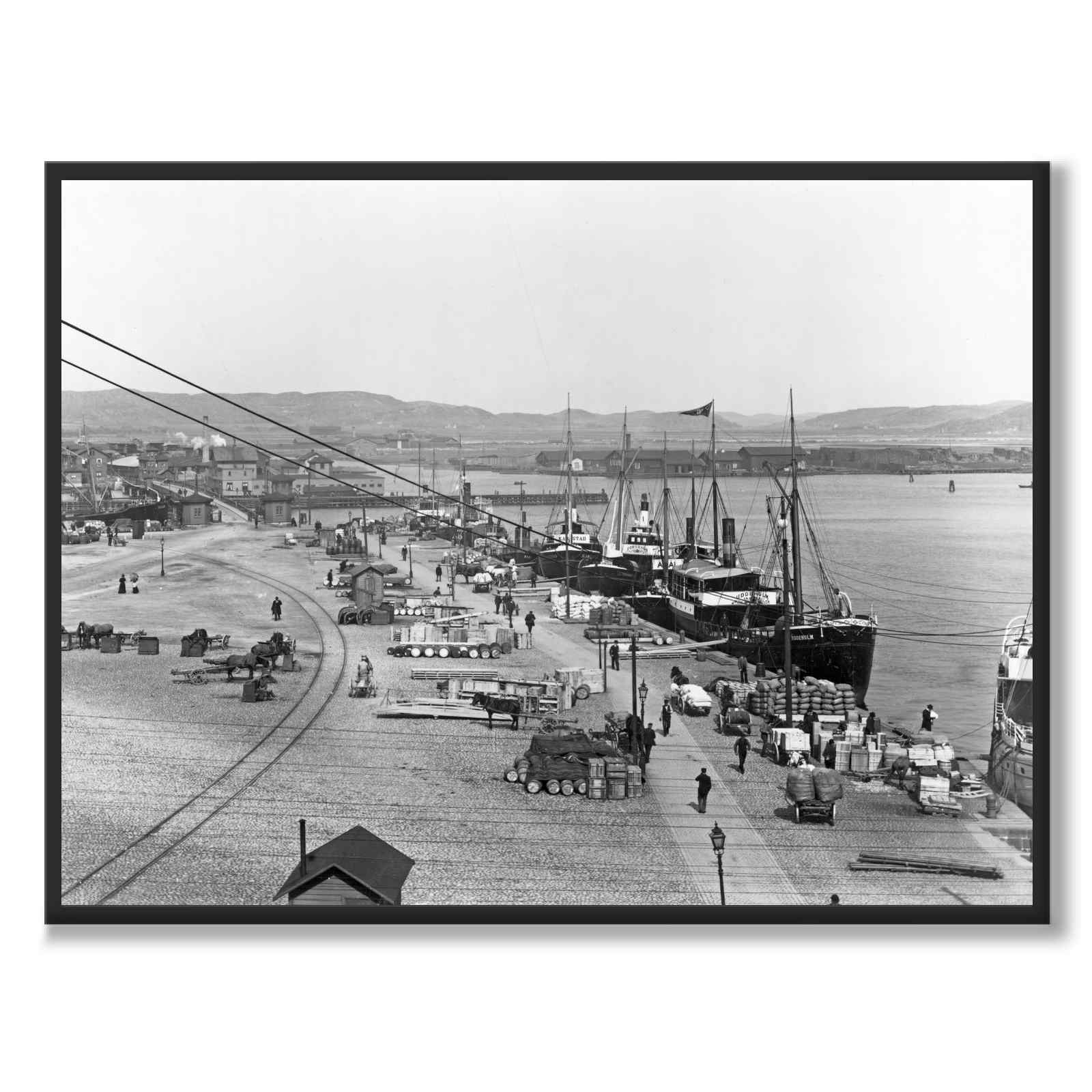 Poster med ett fotografi av Lilla Bommen i Göteborg. Bilden är tagen år 1910 och har en fin detaljrikedom.