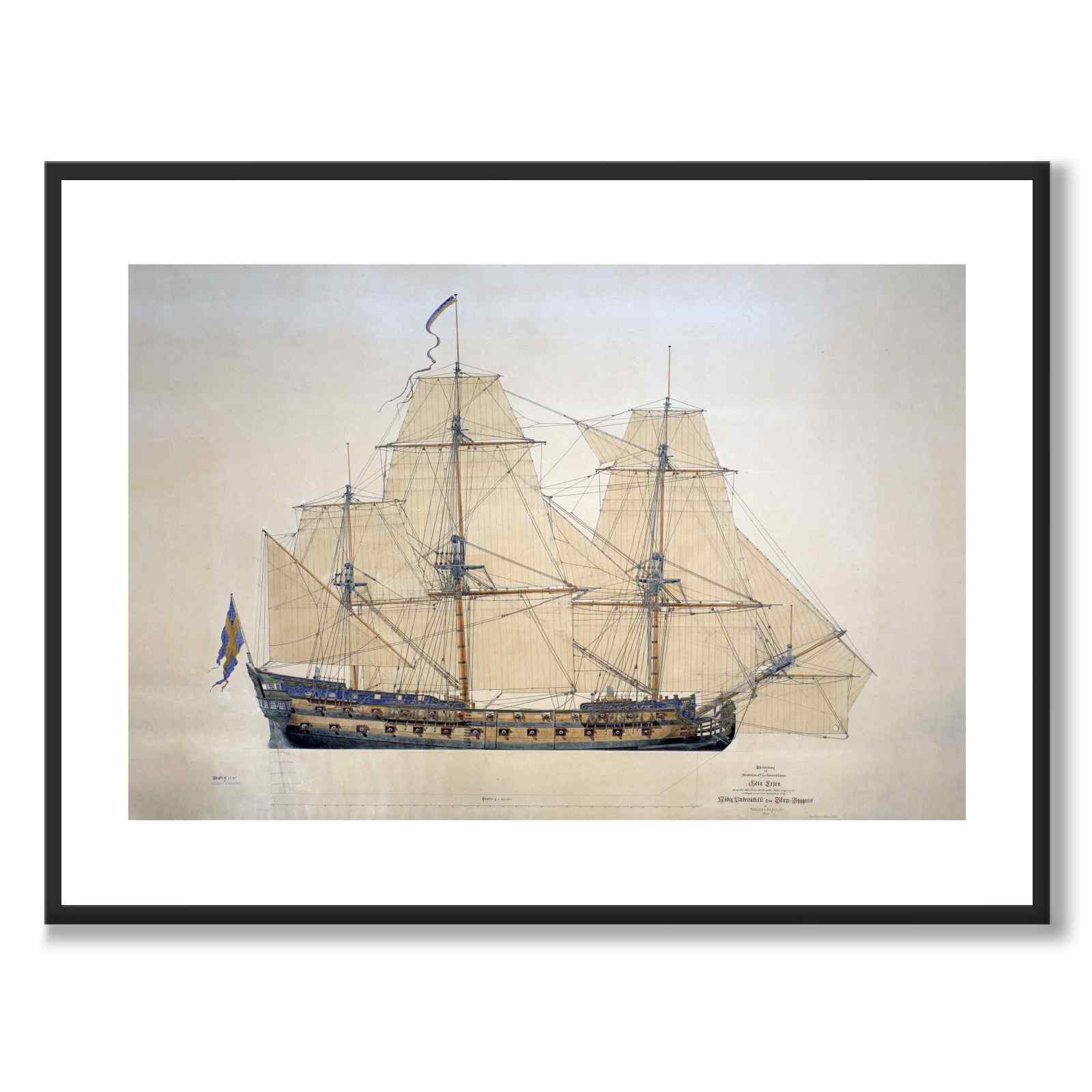 Poster med målningen "Linjeskepp" av den svenska konstnären Jacob Hägg (1839-1931)