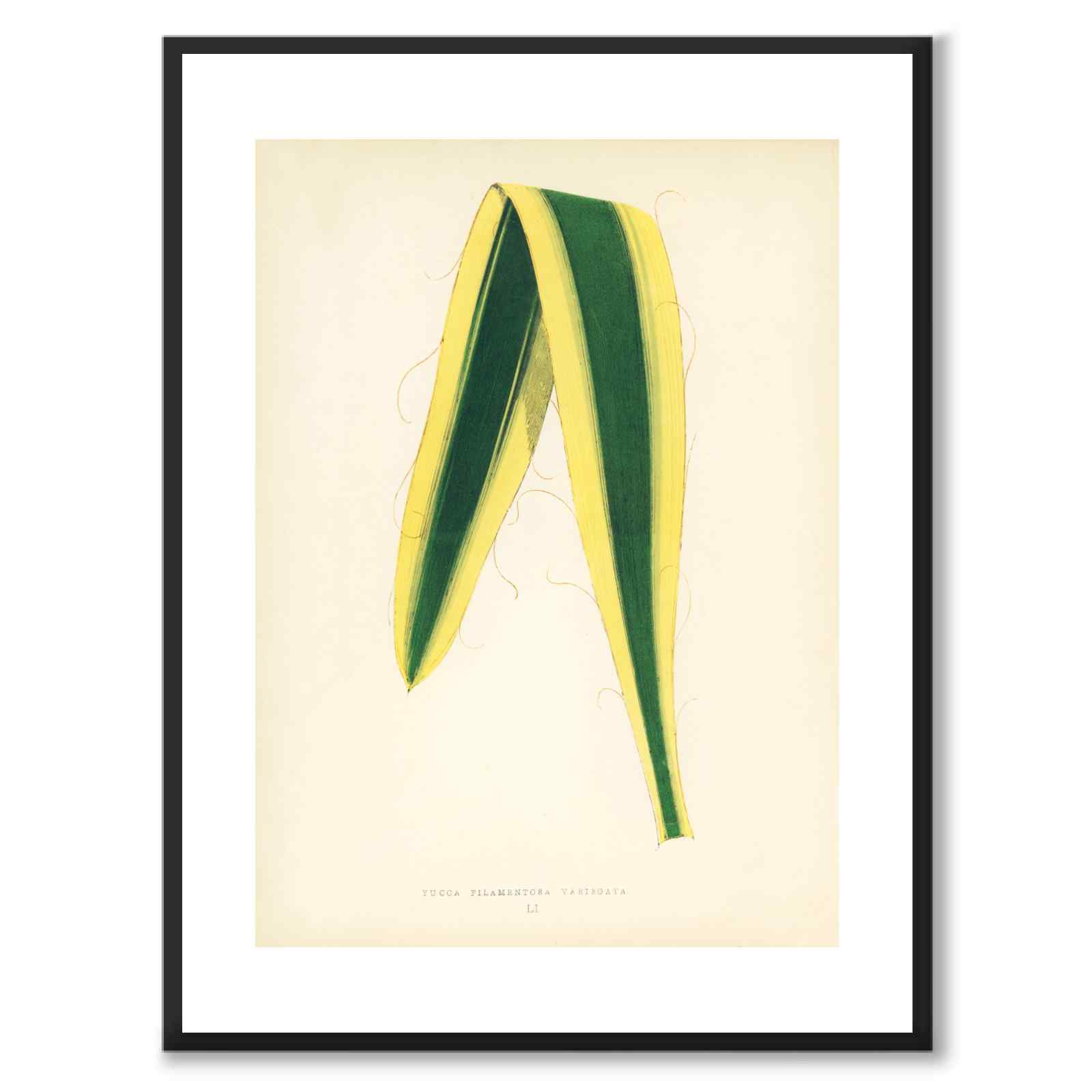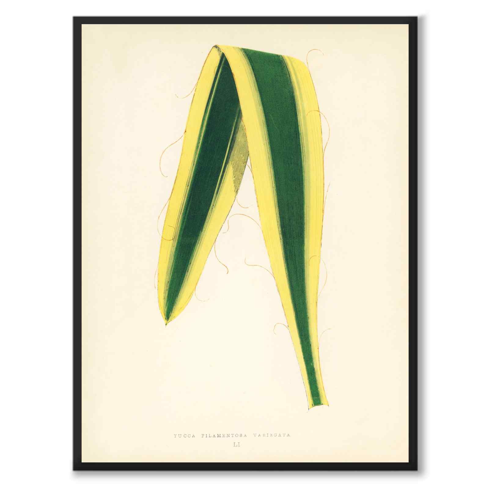 Den här klassiska illustration visar bladet av den populära krukväxten Yucca Filamentosa Variegata. Växten kan klara kalla temperaturer så låga som -10℃ (14℉) och värme upp till 41℃ (106℉).