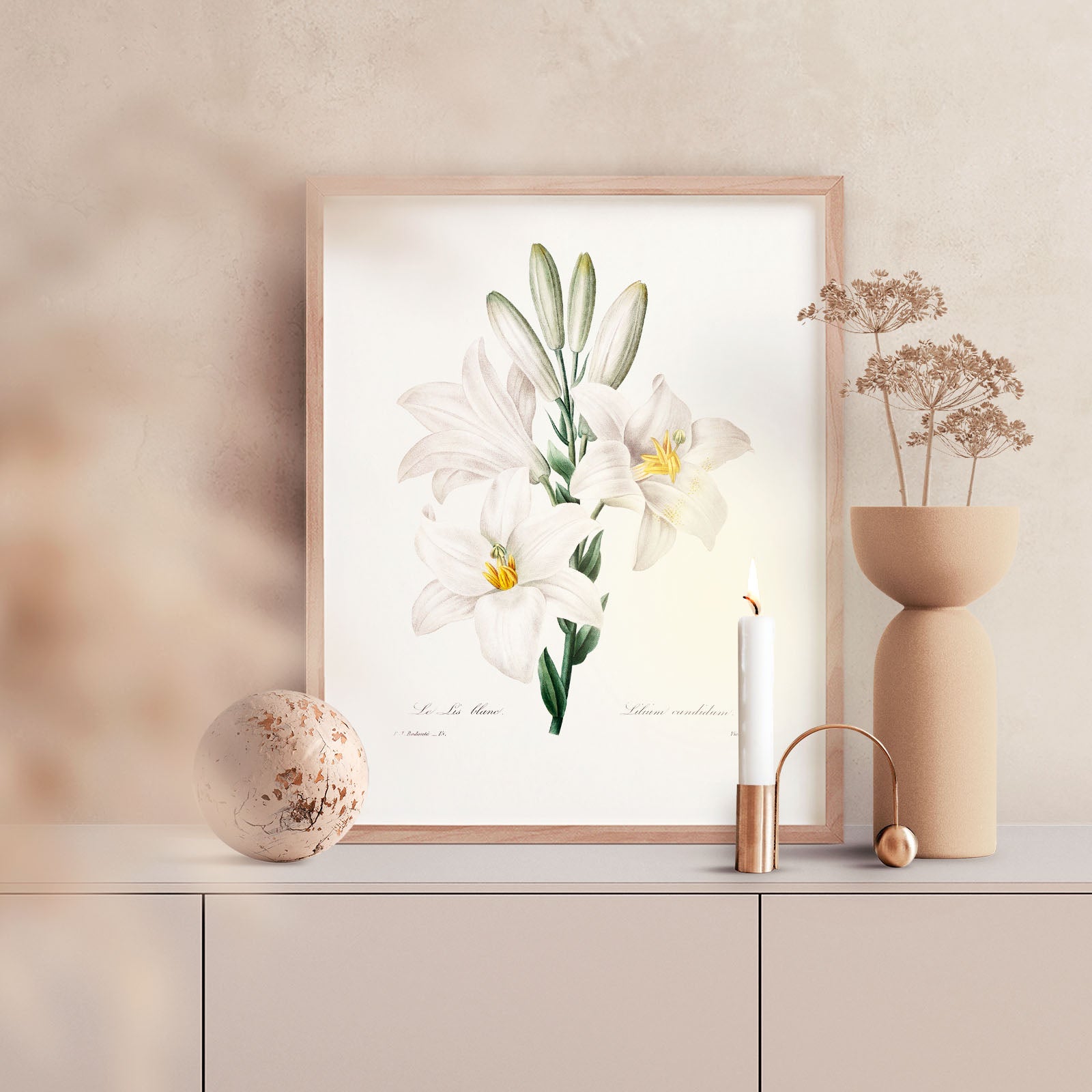 Poster med en klassisk växtillustration från den kände konstnären Pierre-Joseph Redouté (1759-1840). Redouté var en belgisk botanist och konstnär som är känd för sina fantastiska illustrationer av rosor, liljor och andra blommor. Redouté hade smeknamnet "the Raphael of flowers" och har kallats den främsta botaniska illustratören i historien.