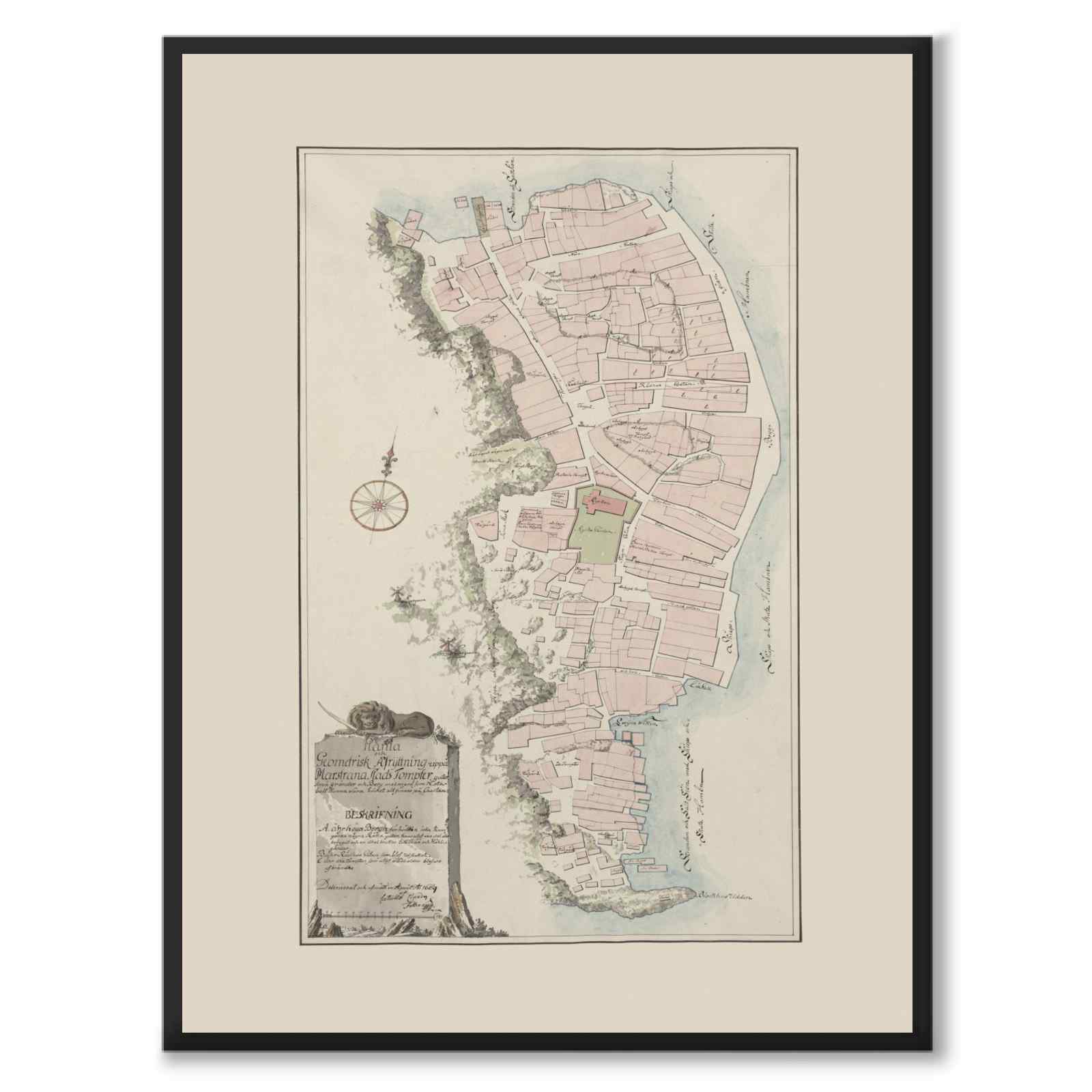 Poster med en gammal karta över vackra Marstrand från 1669, skapad av Kettil Classon Felterus.