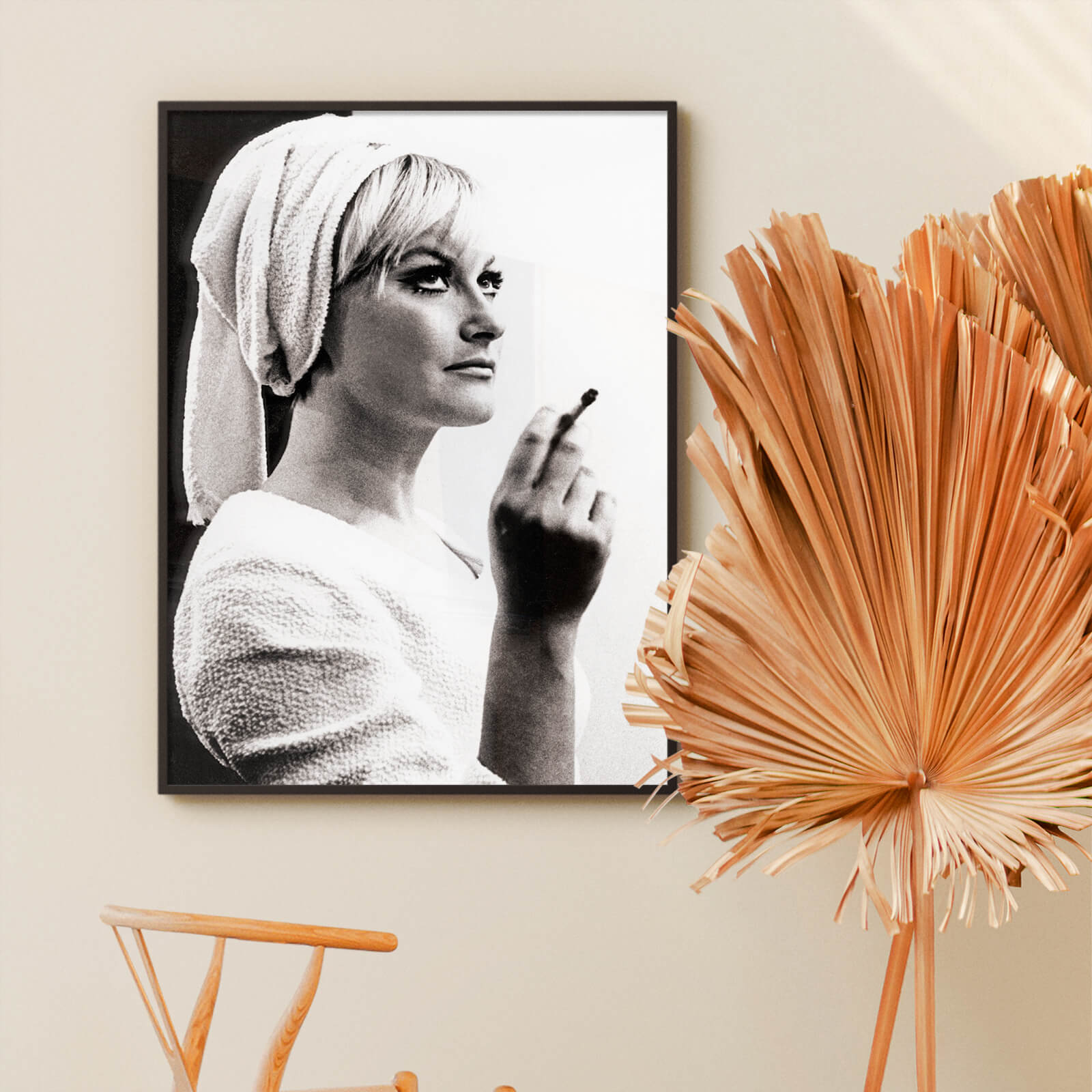 Poster med en bild från 1962 på Monica Zetterlund (1937-2005) som är en svensk ikon inom musik, revy och skådespeleri. Hon kallades ibland bara Monica Z. Hon debuterade som musiker i tonåren tillsammans med sin far i en orkester i Hagfors.