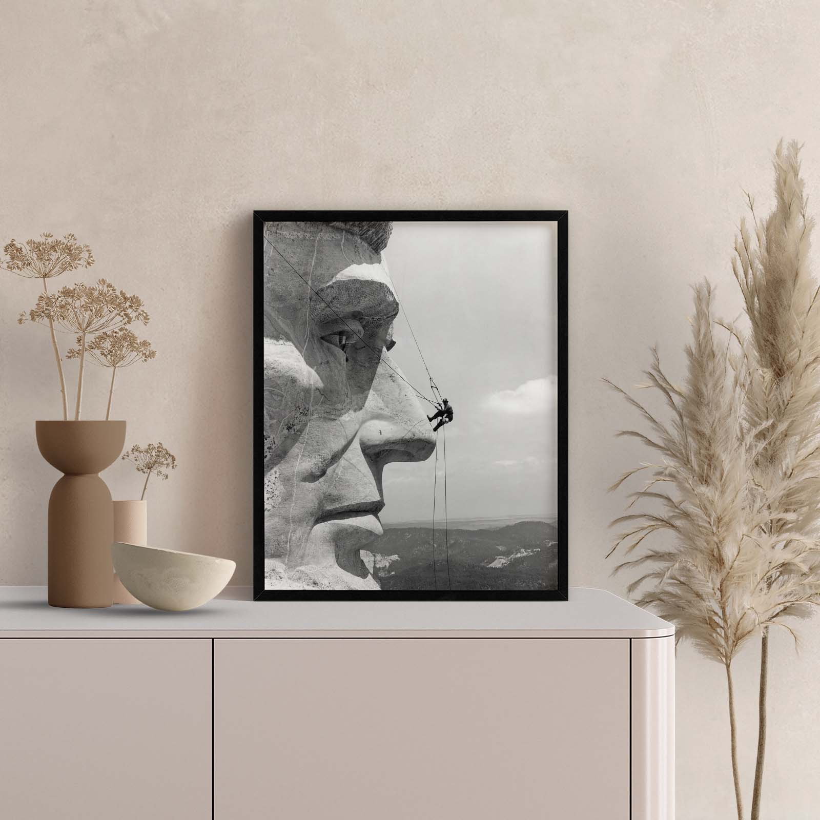 Poster med unik bild på Mount Rushmore I delstaten South Dakota. Platsen är känd för de arton meter höga granitskulpturerna föreställande amerikanska presidenterna Abraham Lincoln, George Washington, Thomas Jefferson och Theodore Roosevelt.