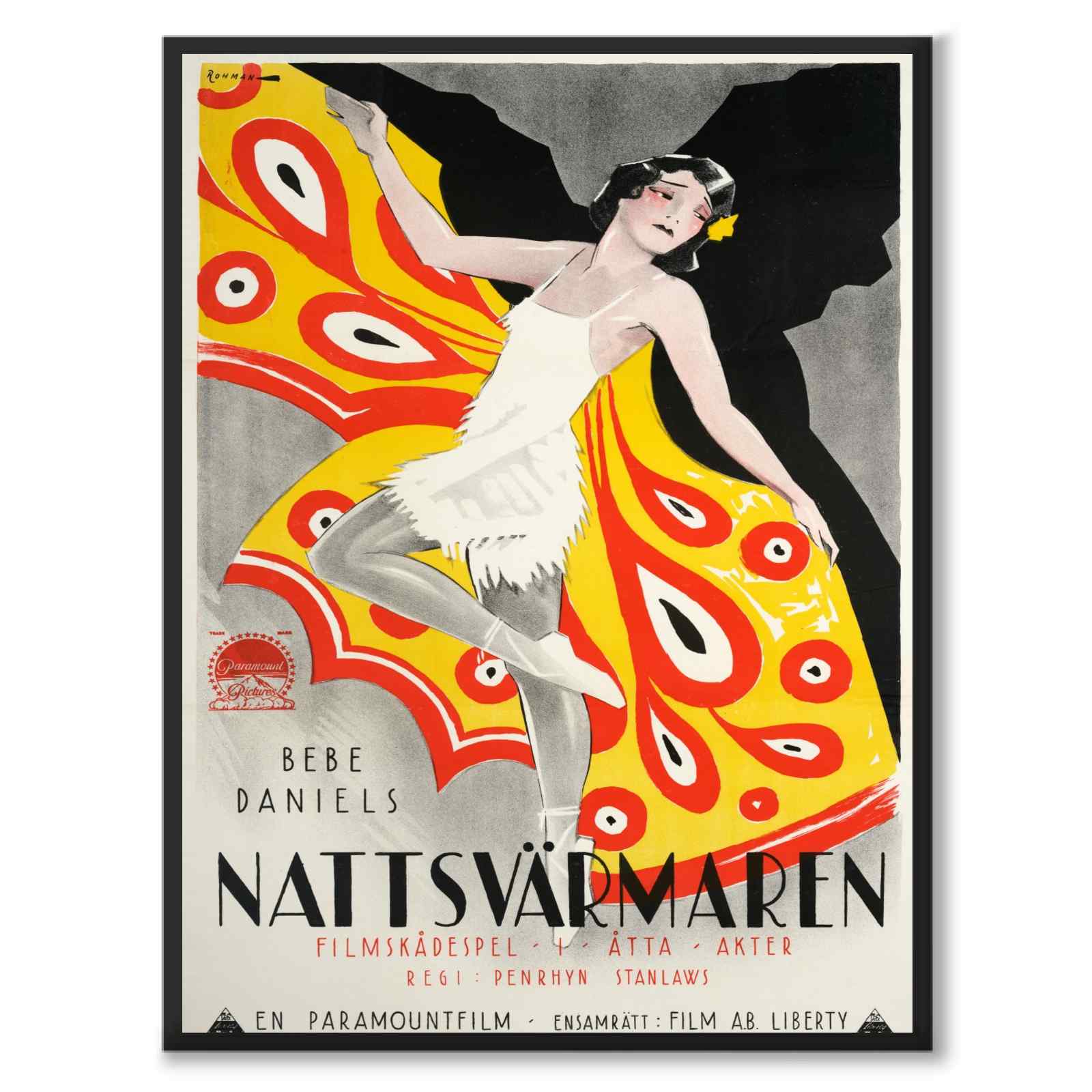 Poster med filmaffischen för Nattsvärmaren (Signed Wings), en gripande film med Bebe Daniels från år 1922.