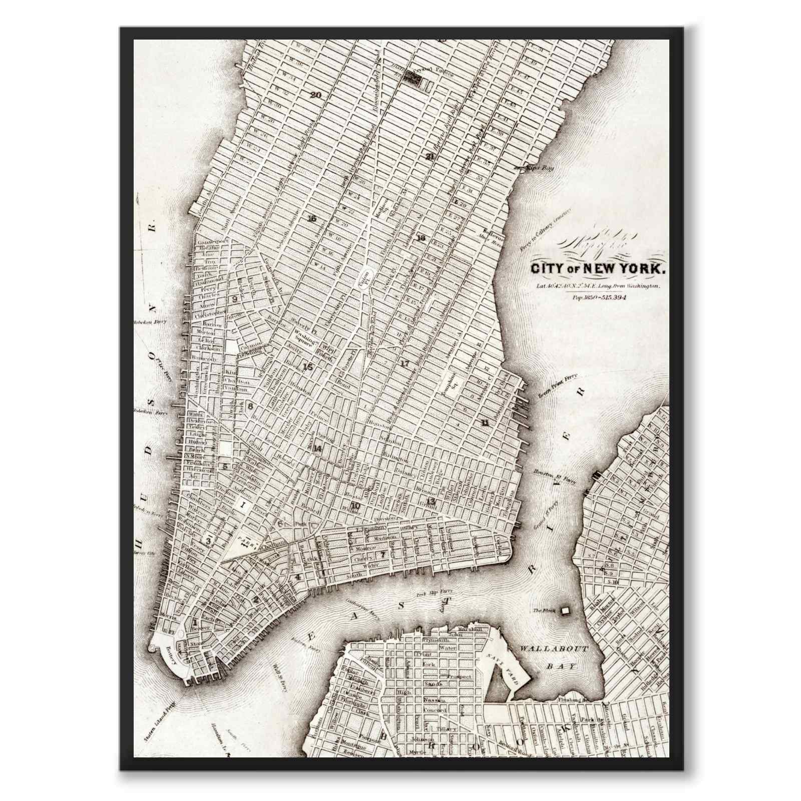 Poster med karta över staden som aldrig sover, New York. Kartan ritades i mitten på 1800-talet.