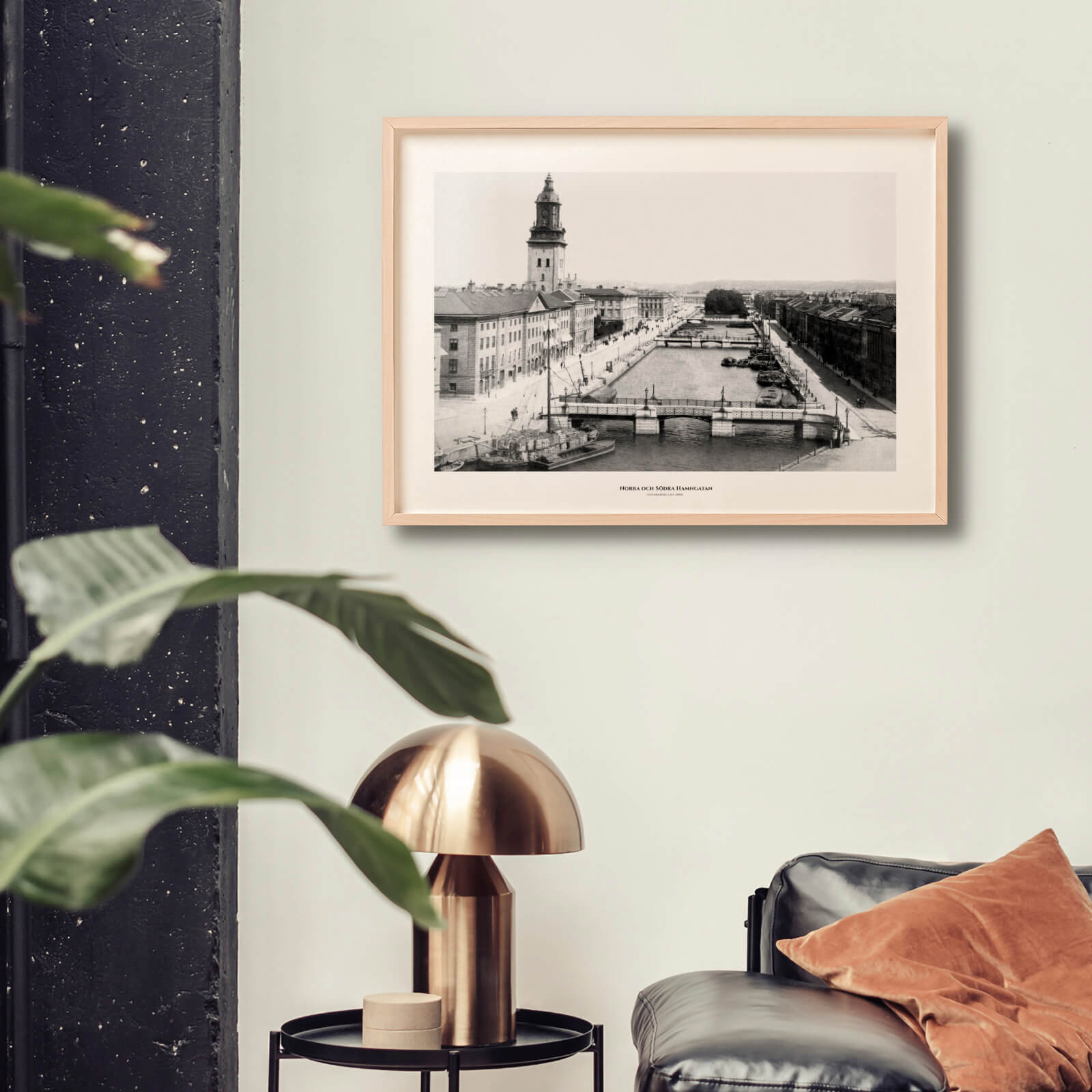 Lite längre bak till vänster i bilden ligger Gustav Adolfs torg och idag även Nordstan. En vacker bild som visar hur mindre segelbåtar med last gick långt in i kanalerna förr. Den Stora Hamnkanalen började byggas redan på 1620-talet på uppdrag av Göteborgs grundare Gustav II Adolf. Den skulle "tjäna den sjögående varutrafiken med mindre fartyg, som kommo med spannmål och andra nödiga varor". Ända fram till 1900-talet hade många privatpersoner sina båtar i Stora Hamnkanalen, men det förekommer inte längre.