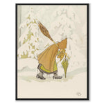 Poster med en illustration ur Elsa Beskows saga Olles skidfärd som publicerades för första gången år 1907.