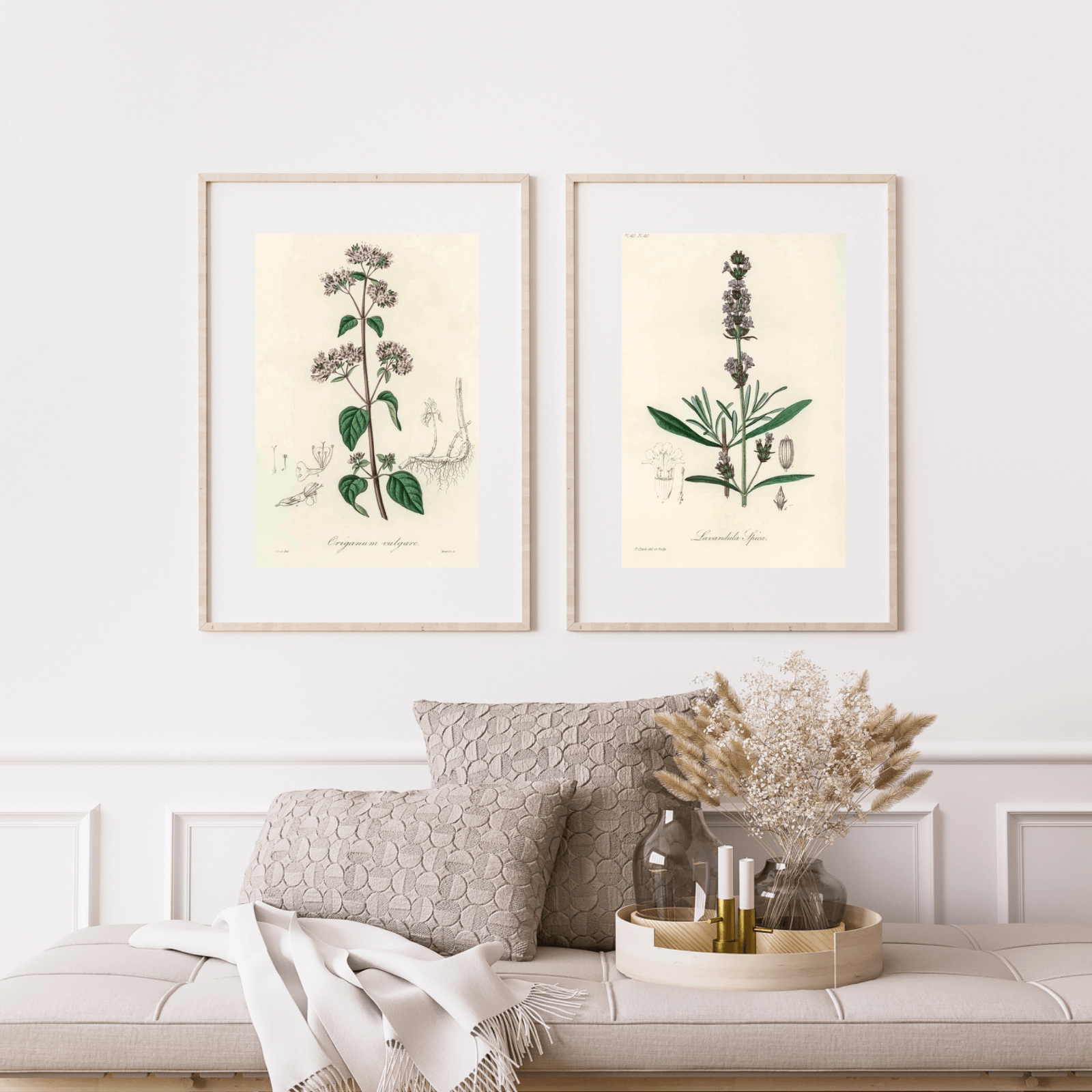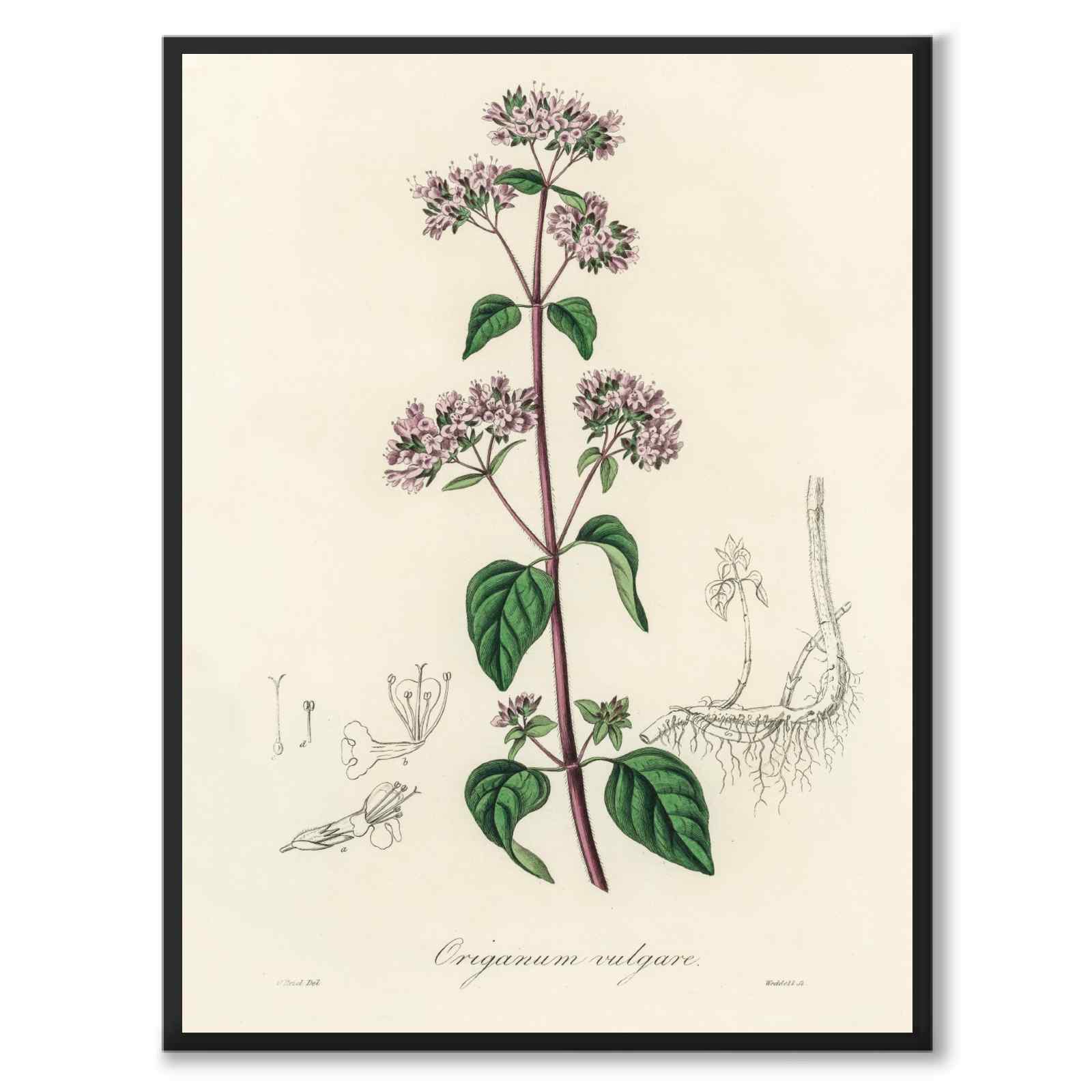 Poster med motiv av illustrationen Origanum vulgare, även känt som oregano, från 1800-talet.