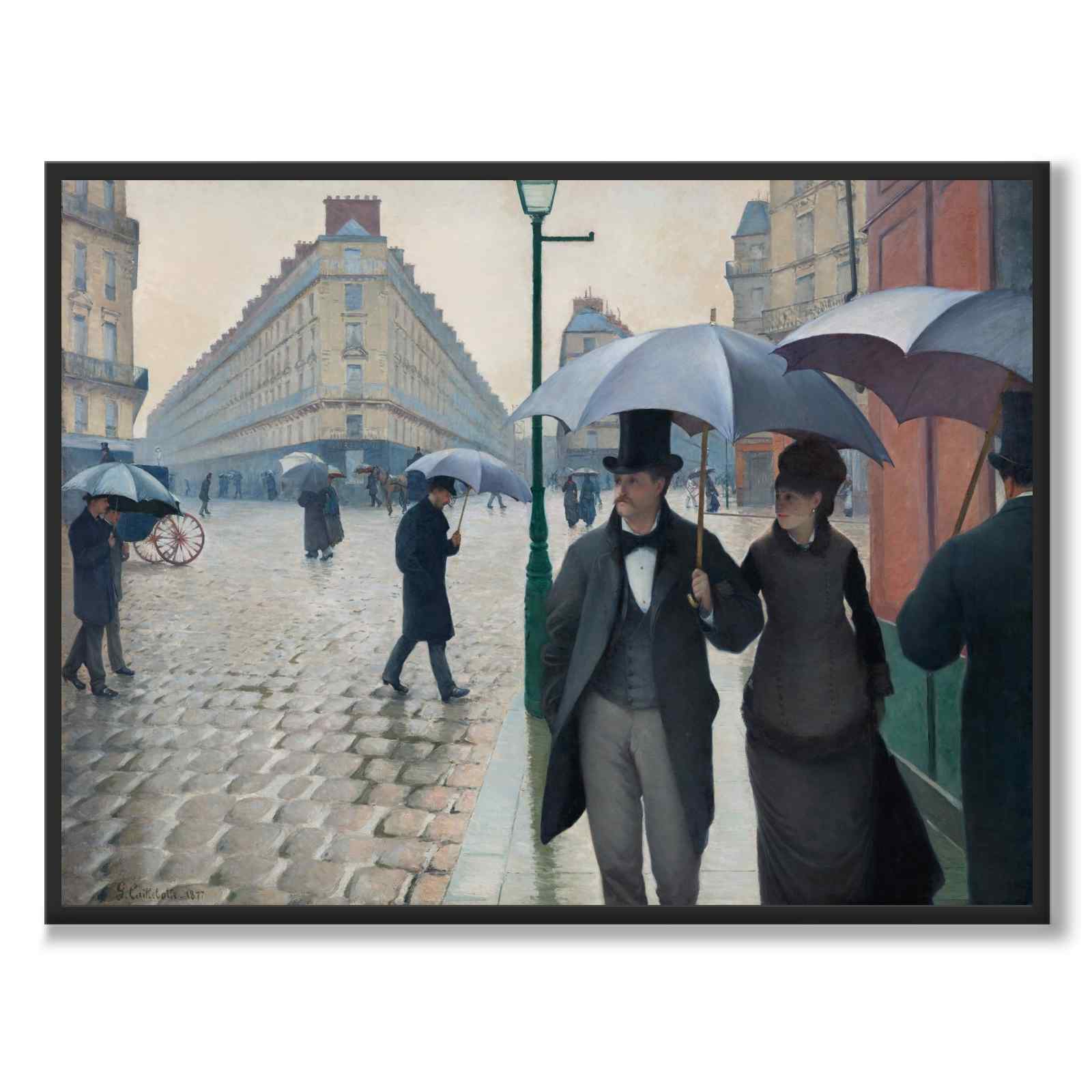 Poster med den vackra tavlan Paris Street skapad 1877 av Gustave Caillebotte - en fransk målare inom impressionismen. Caillebotte ingick i den impressionistiska kretsen och ställde ut på flera av deras gemensamma utställningar.